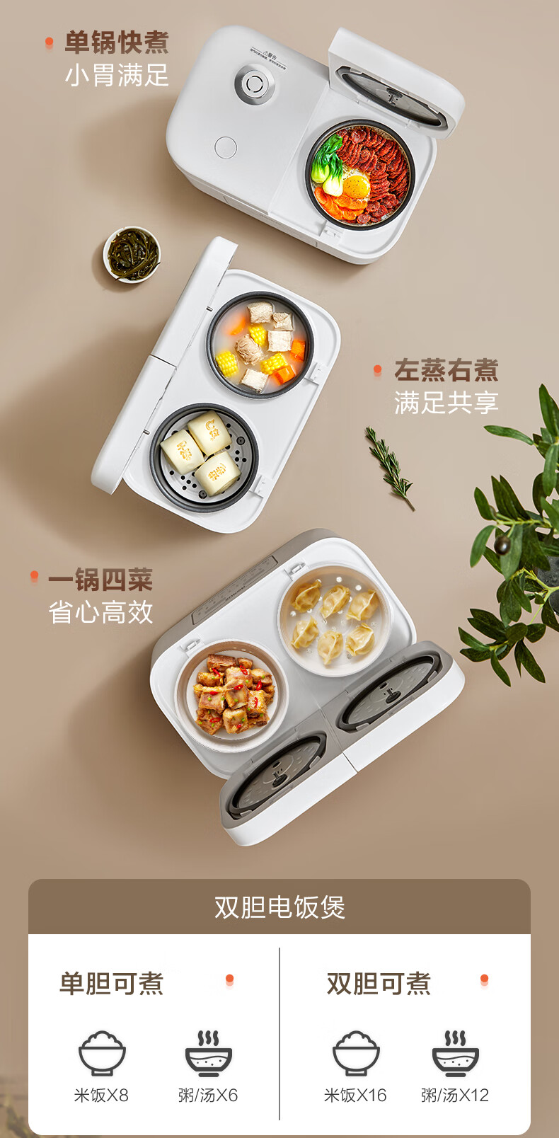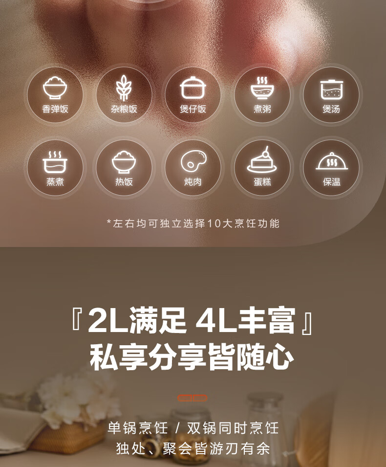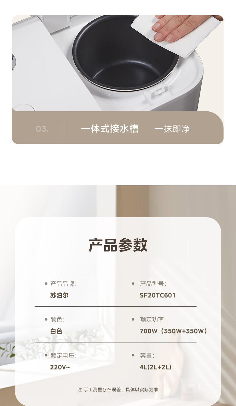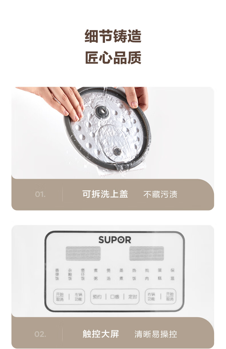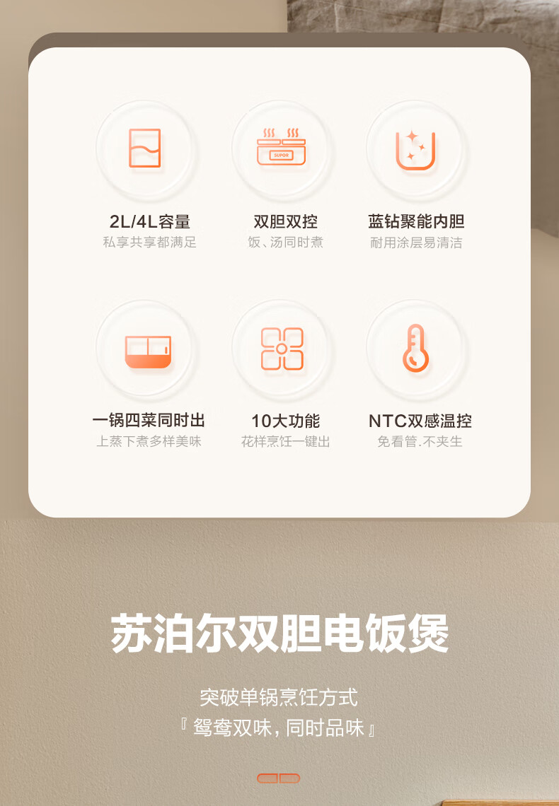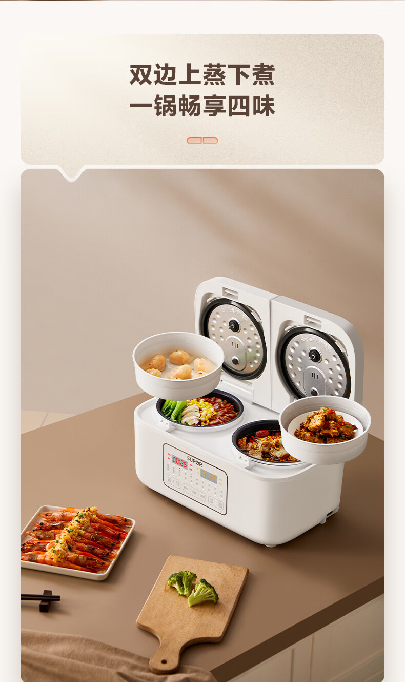 苏泊尔(SUPOR)双胆电饭煲电饭锅2+2L SF20TC601单位:个 白色