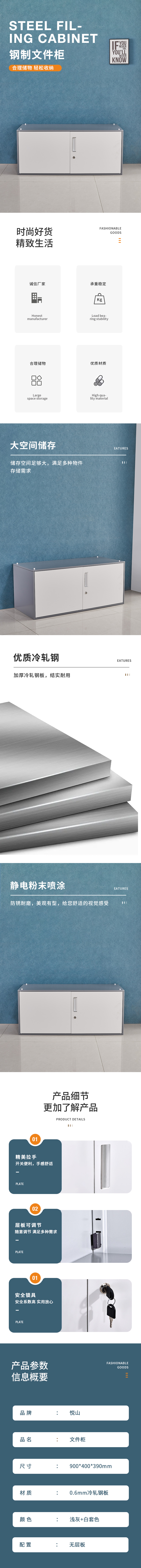 悦山文件柜 单节顶柜900*400*390mm*1台 浅灰+白
