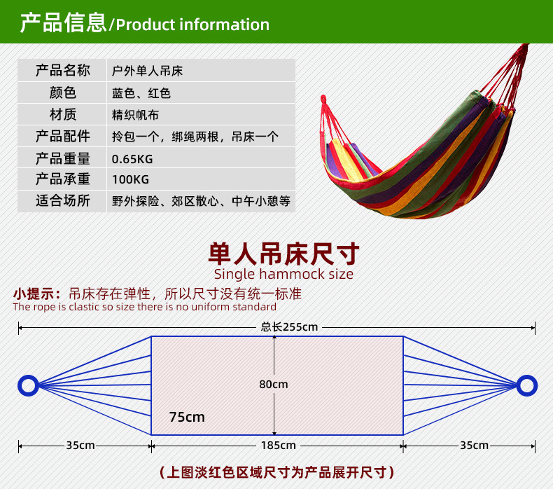 单人防侧翻帆布吊床 彩虹条纹 彩虹条纹