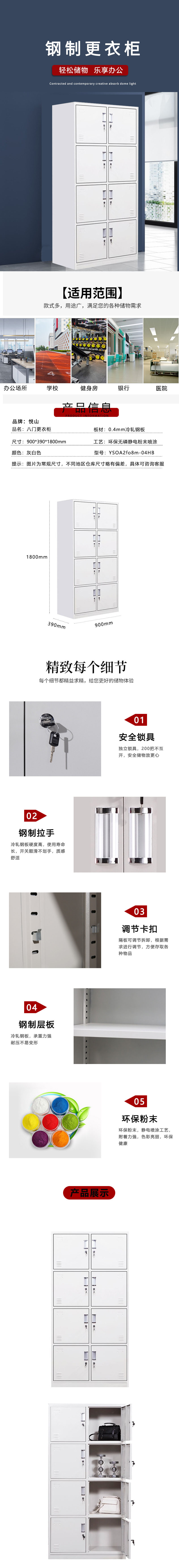 悦山钢制更衣柜宿舍衣柜 8门更衣柜 常规款900*390*1800*1台 灰白色