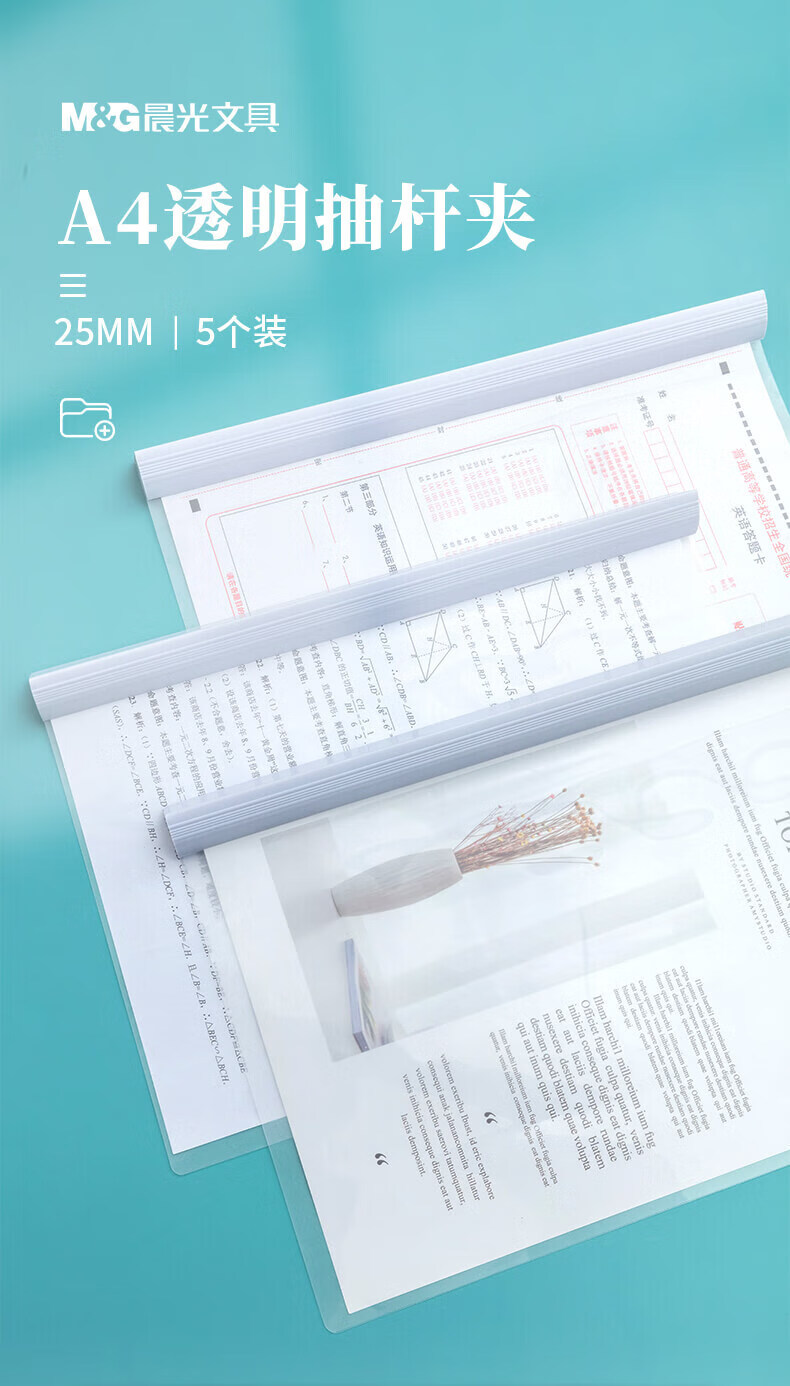 晨光(M&G) 透明抽杆夹 25mm5个装 资料整理收纳文件夹 白色(单位:组)