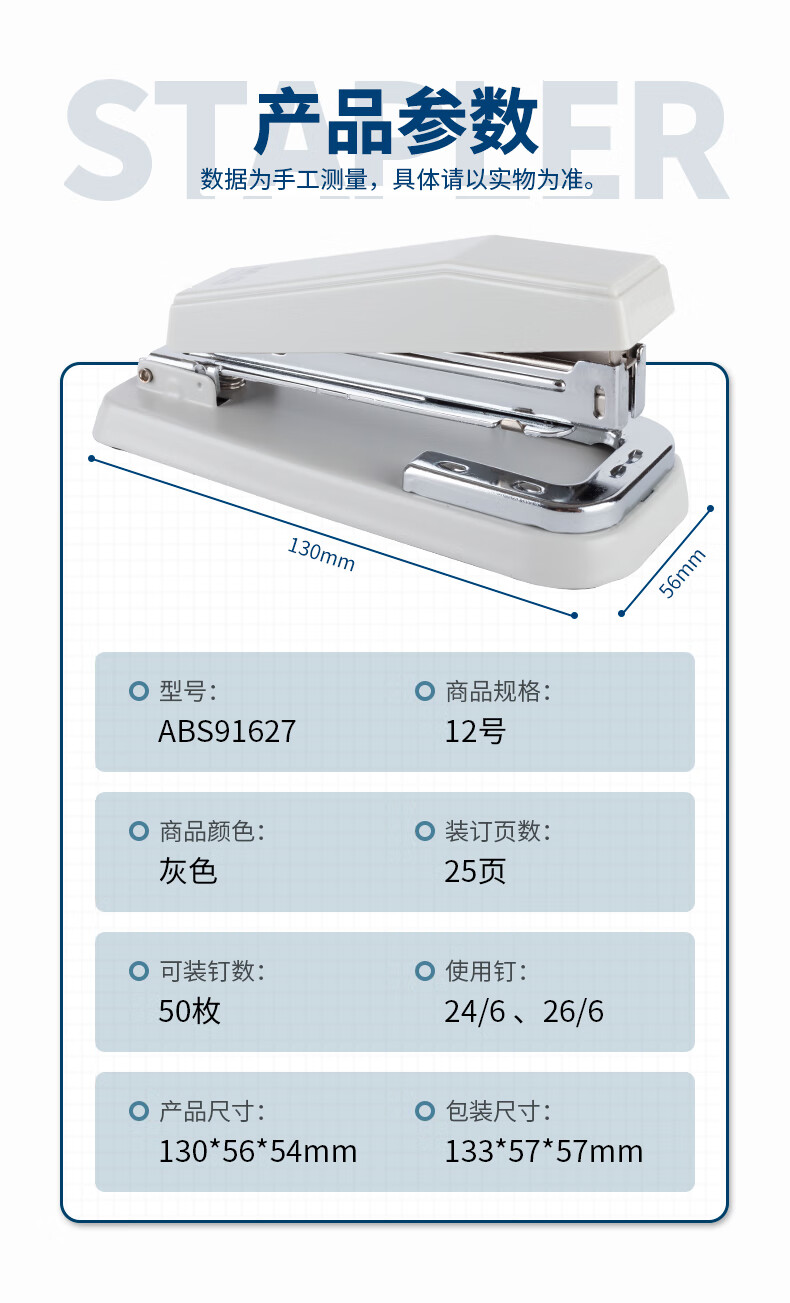 晨光(M&G) 经典360度摇头订书器 ABS91627 130*56*54mm 灰色(单位:个)
