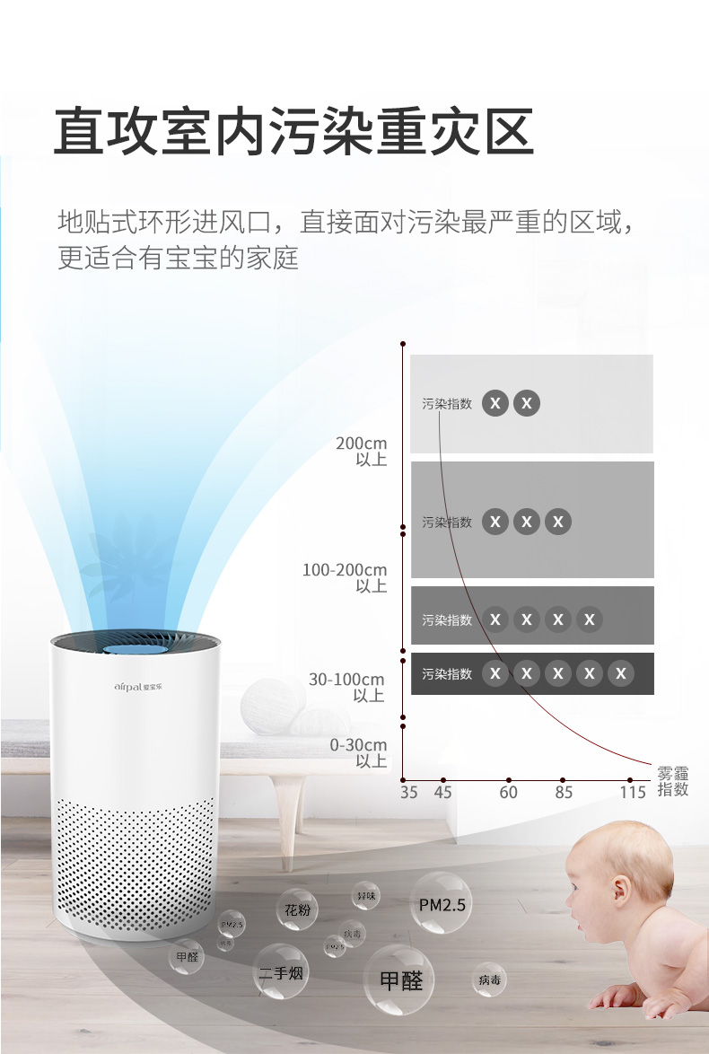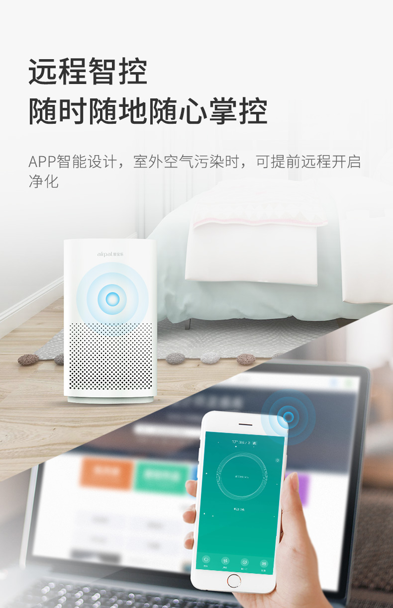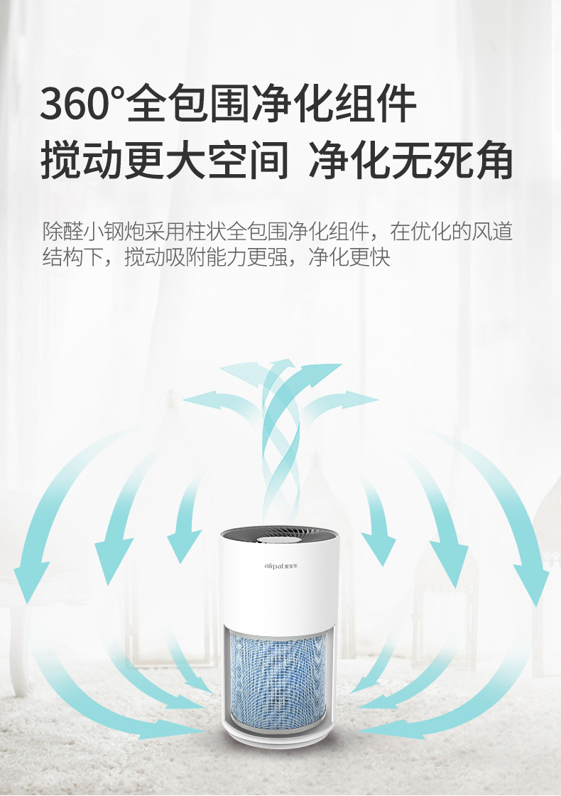 爱宝乐(airpal) 空气净化器家用 除甲醛 除雾霾 除烟尘小型便利净化器 AP220 白色