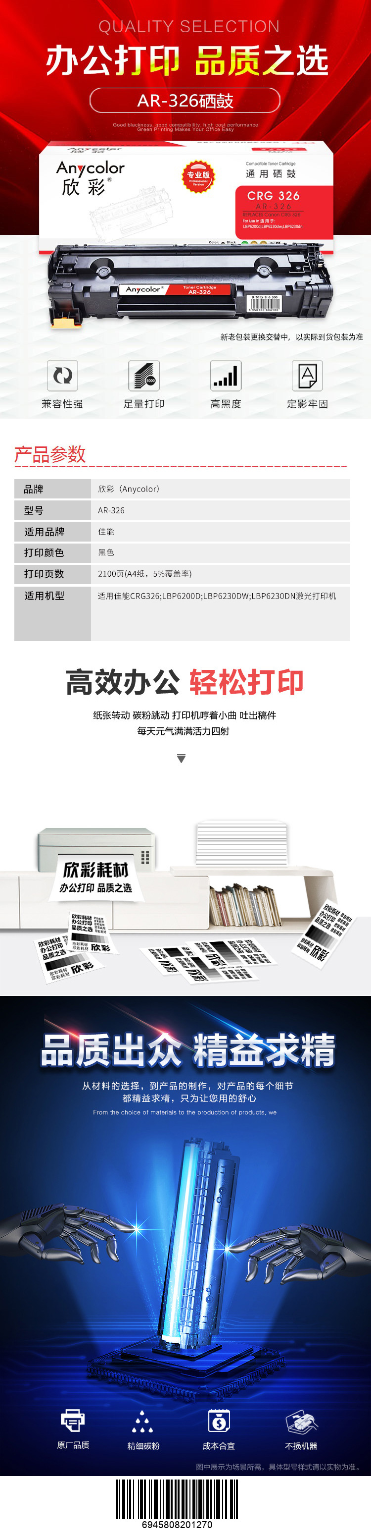 欣彩(Anycolor) AR-326 专业版 2100页 适用佳能 LBP6230dw 硒鼓 1.00 只/支 (计价单位:支) 黑色