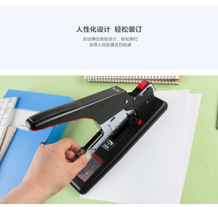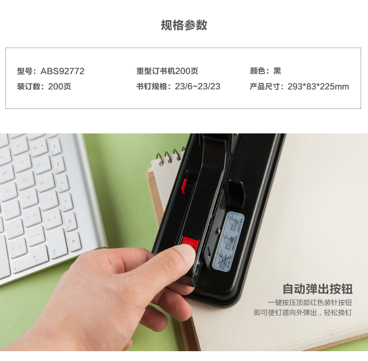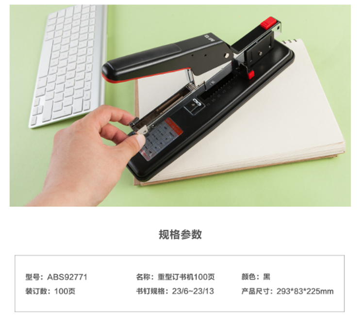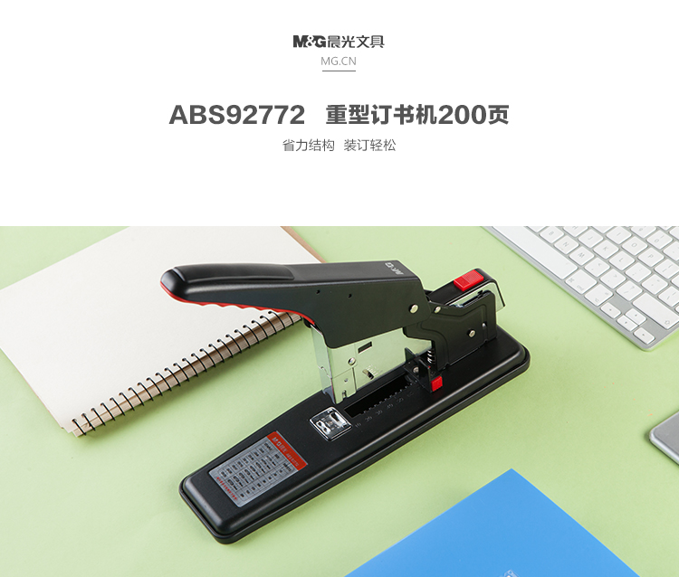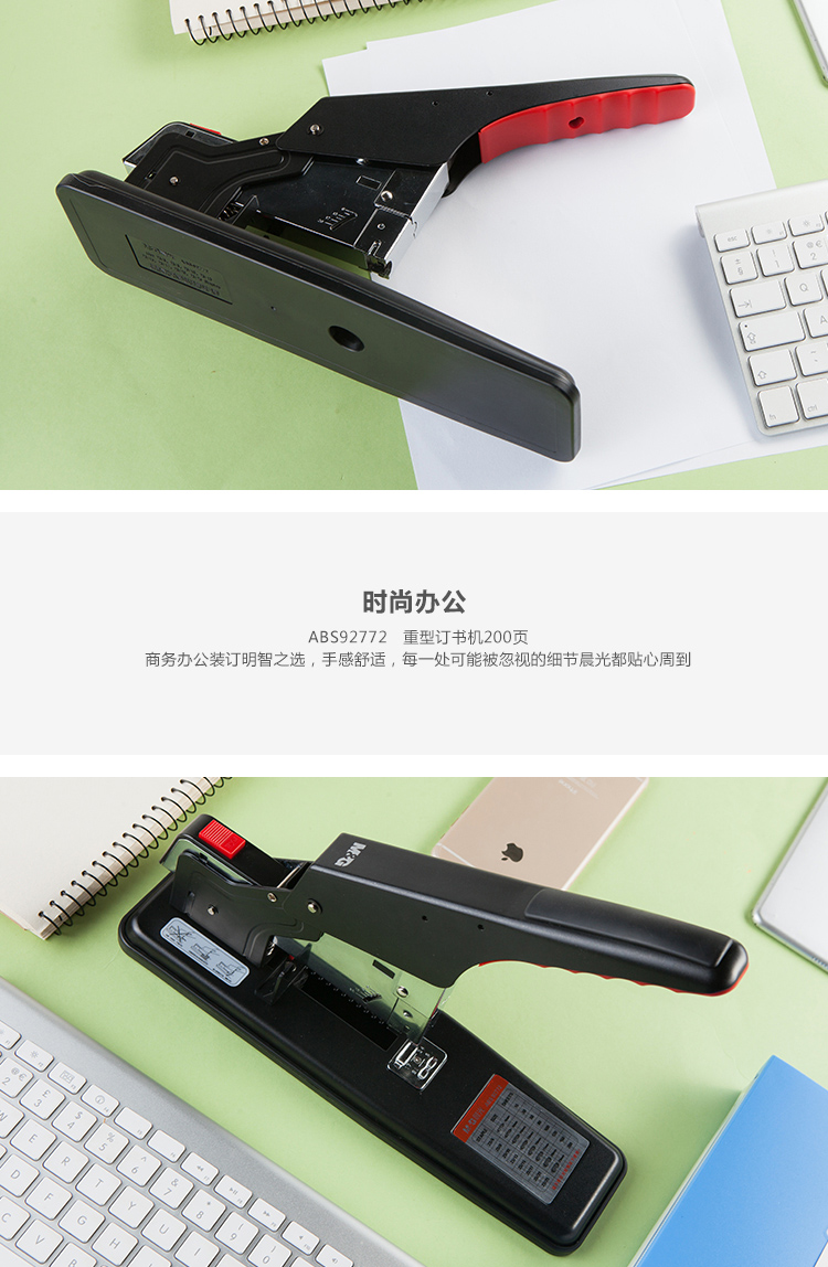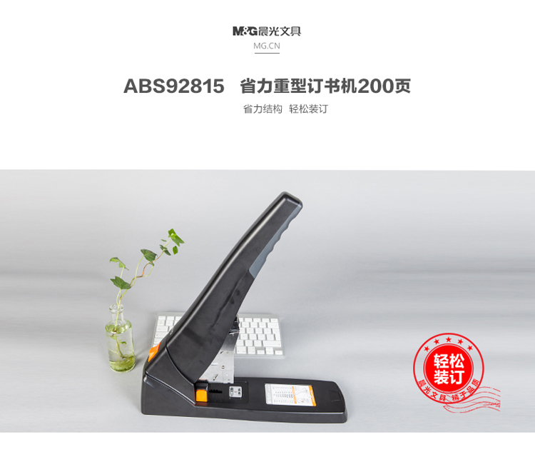 晨光(M&G) 重型订书机大号厚层订书器加厚钉大型财务办公凭证装订机 ABS92815 重型200页 黑色