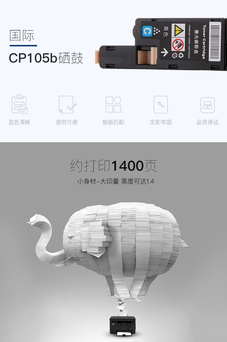 国际 CP105B青色/蓝色墨粉盒1400页 单位:支 CP105B蓝色墨粉盒*1