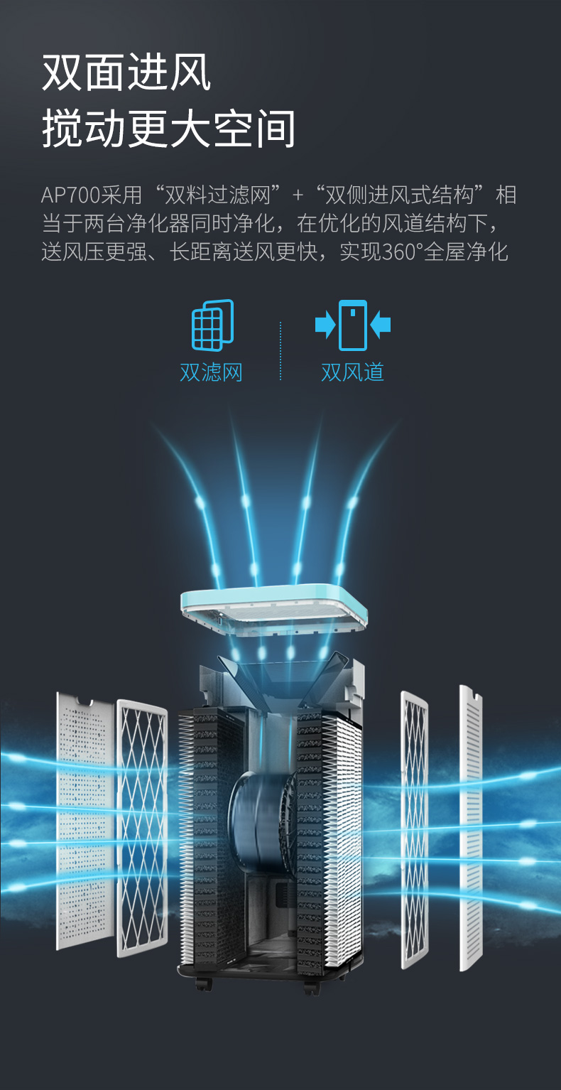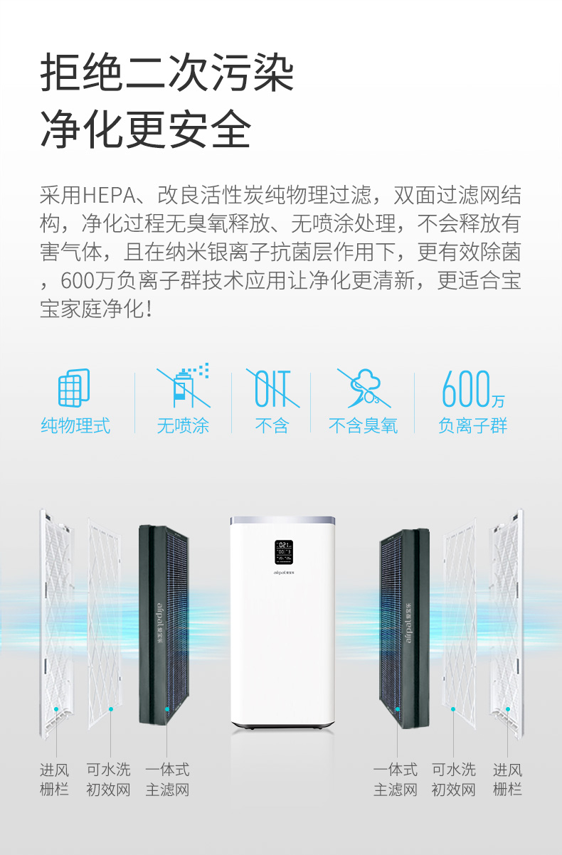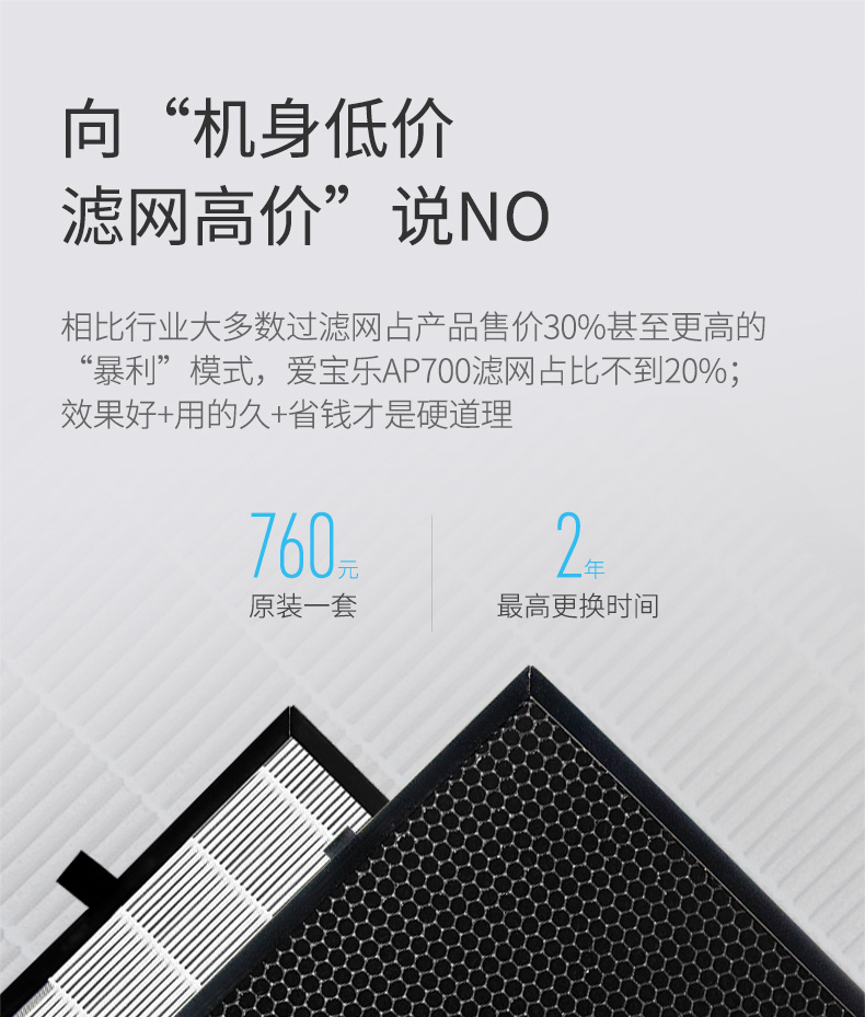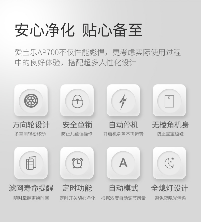 爱宝乐(airpal) 空气净化器家用 办公室除雾霾除甲醛除菌智能 AP700 白色
