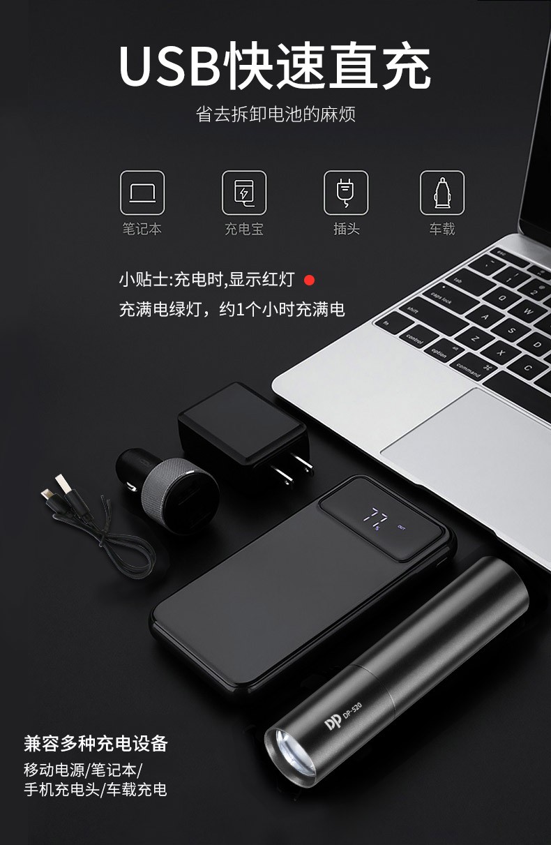 DP久量 LED电池式铝合金手电筒 DP-520(单位:个) 曜石黑