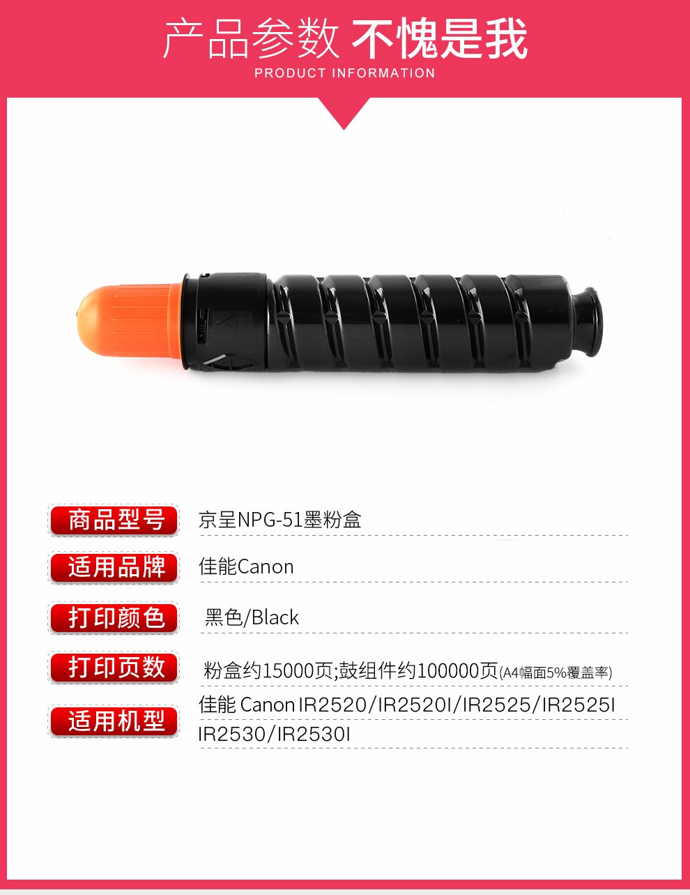 京呈适用佳能NPG-51粉盒IR2520i 2525I墨盒2530i 2520 2530墨粉筒碳粉/支 NPG-51大容量墨粉盒15000页