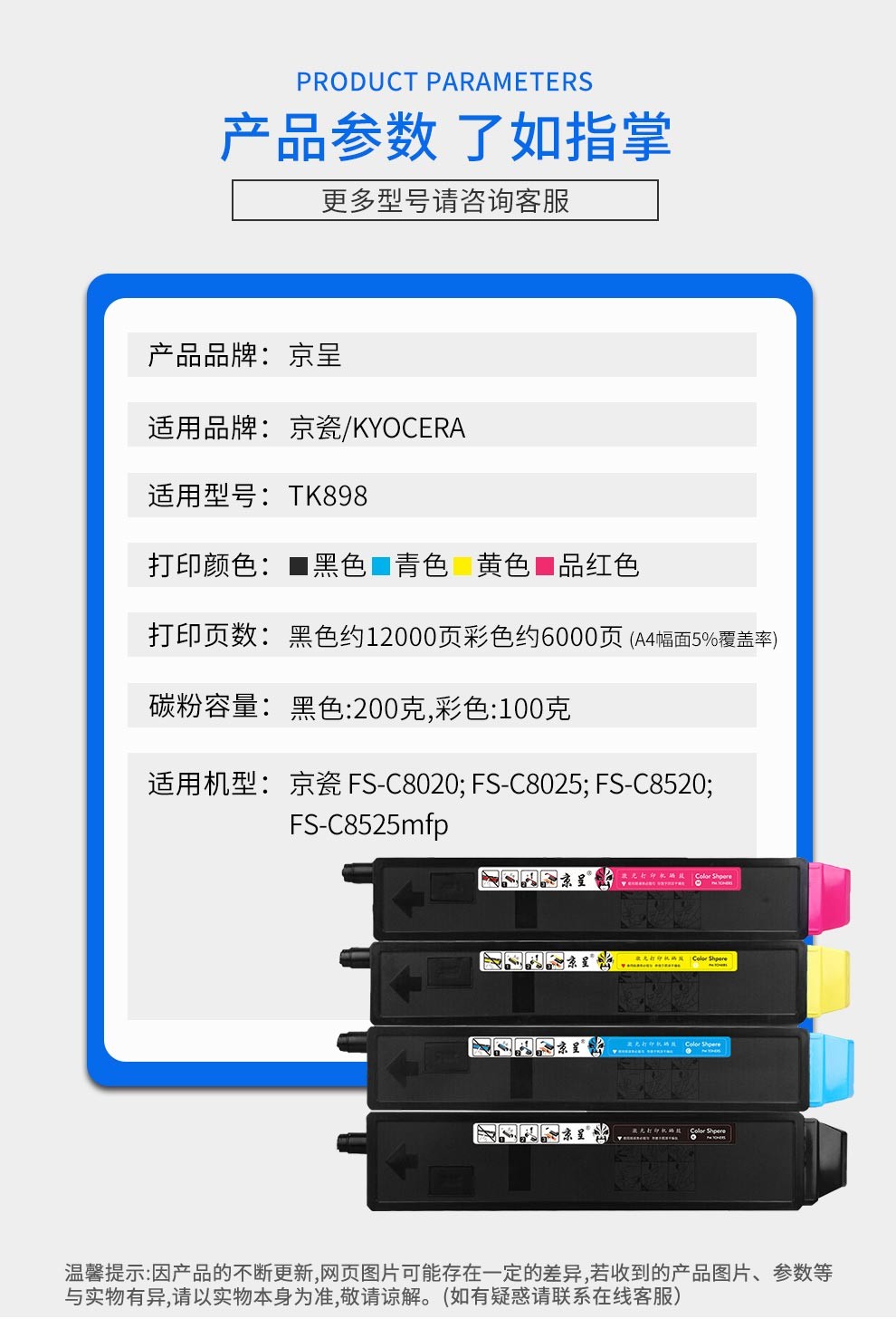 京呈TK898墨粉盒适用京瓷8020粉盒FS-C8025碳粉C8520 FS-C8525墨盒mfp/支 TK898大容量墨粉盒/墨盒 青色-60
