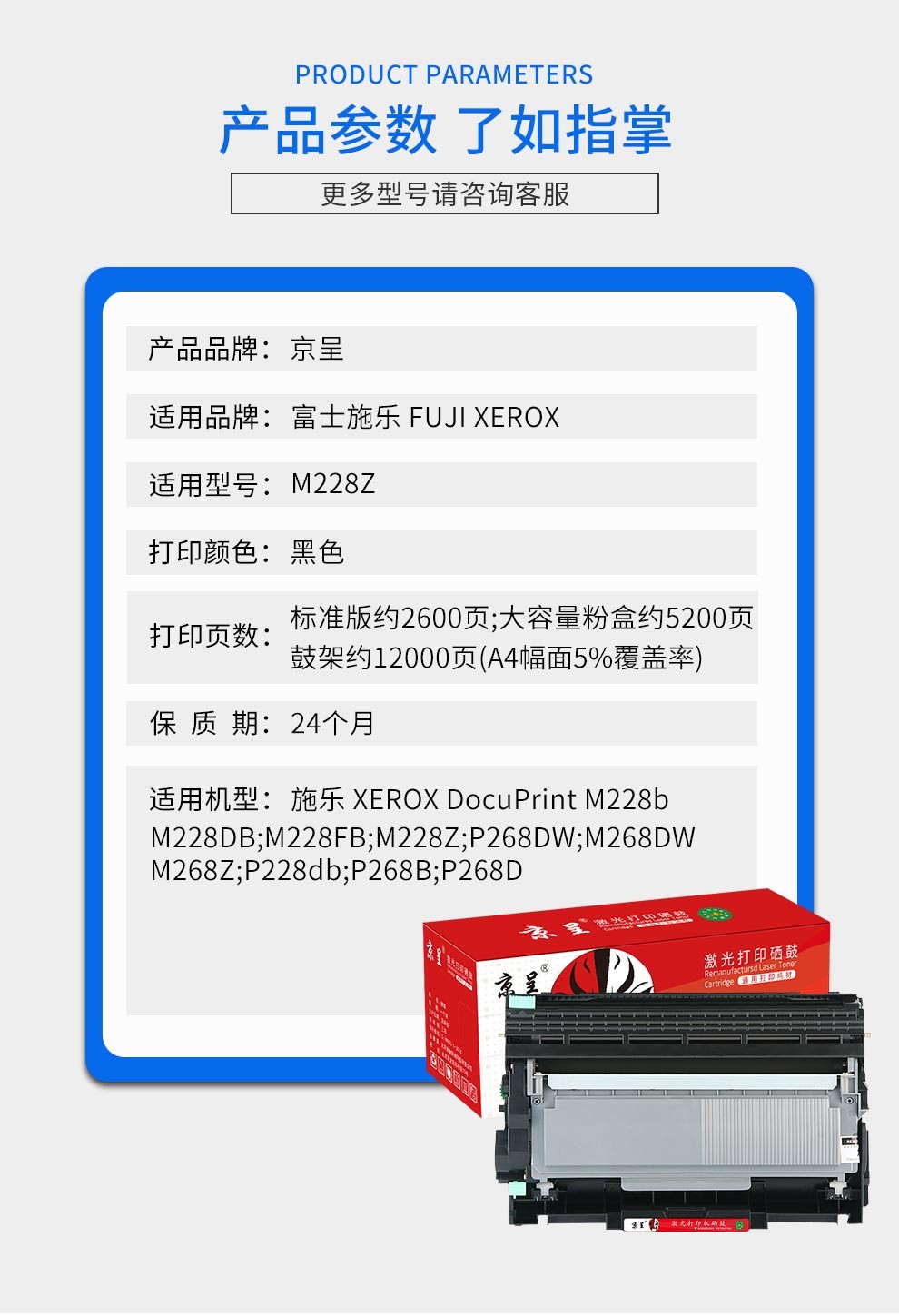 京呈P228b适用富士施乐m228b m228fb/db硒鼓p268b p225db墨粉p268dw/支 【12000页】P228db硒鼓架/鼓组