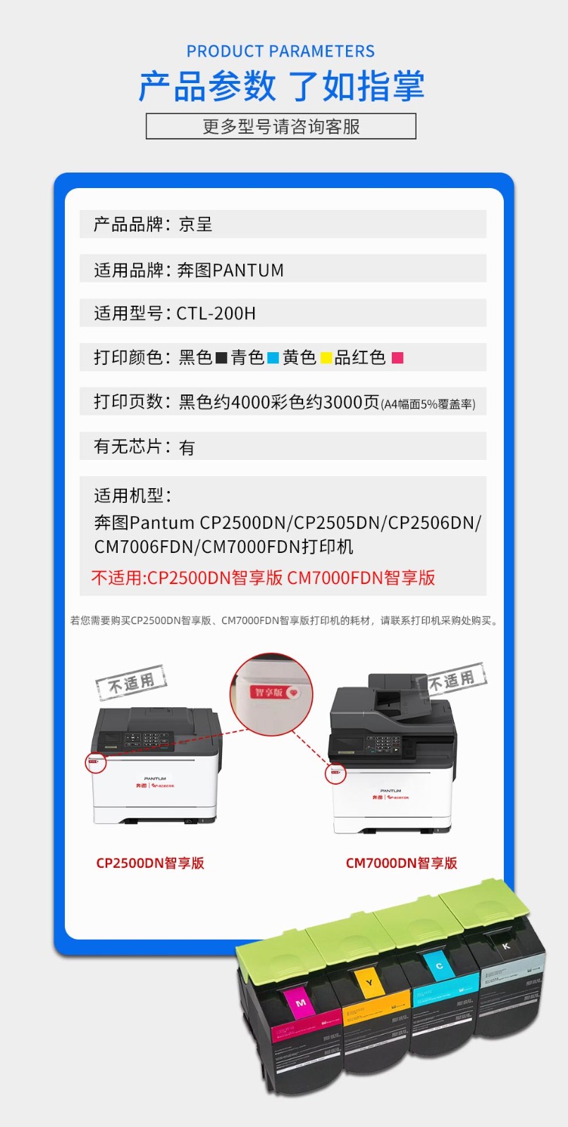 京呈适用奔图CTL-200墨盒cp2500dn粉盒2505硒鼓2506打印机CM7006FDN墨粉/支 CTL-200HK 黑色粉盒
