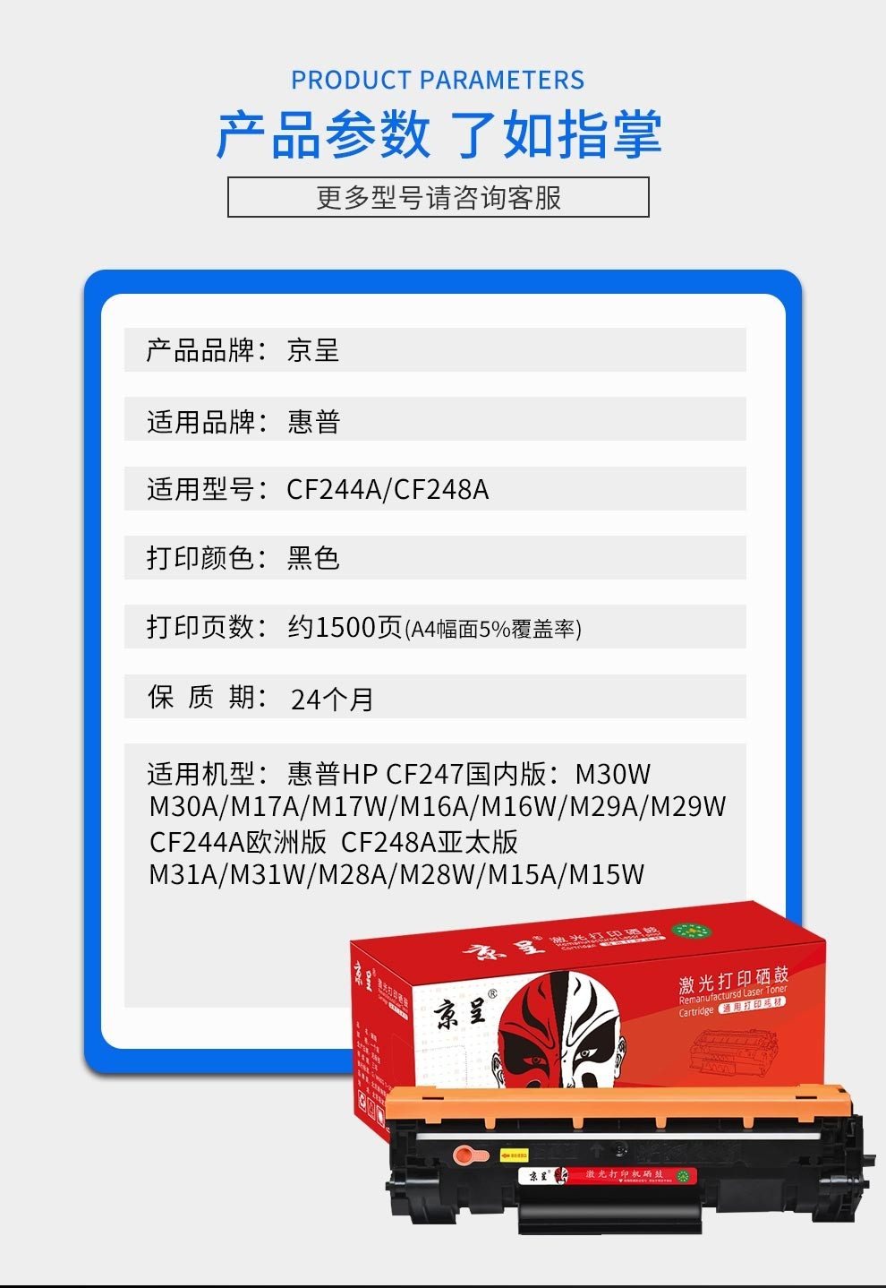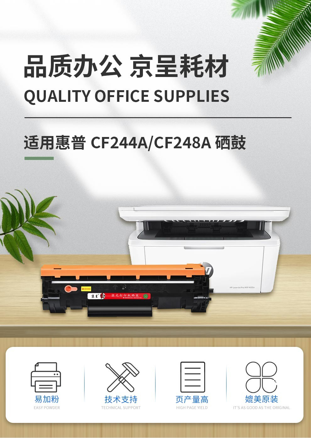 京呈适用惠普CF244A硒鼓M28w墨盒M15w墨粉M28a粉盒M15a打印机48A 44A碳粉盒/支 CF248A硒鼓