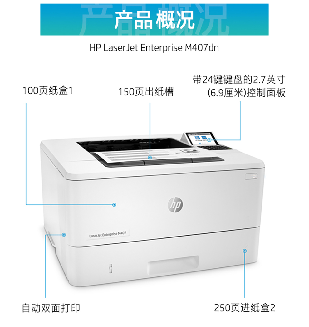 惠普(HP)黑白激光单功能打印机A4 M407dn 台 灰色