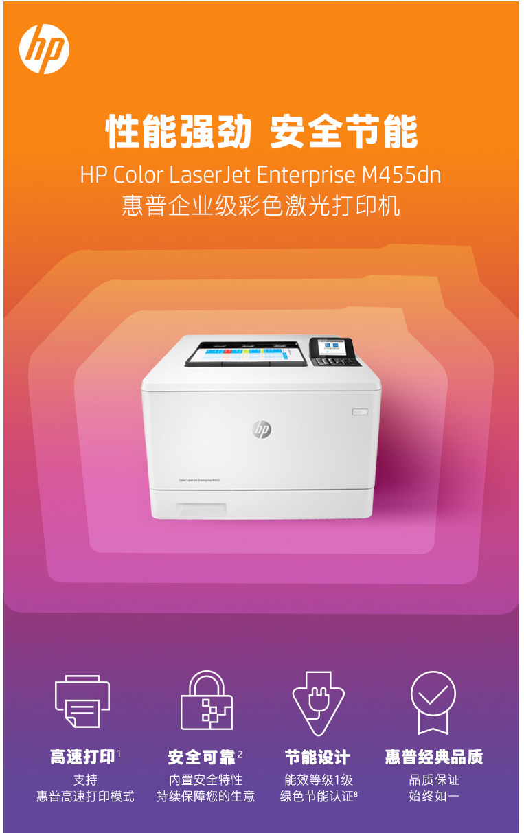 惠普(HP)M455dn A4彩色激光单功能打印机 台 灰色