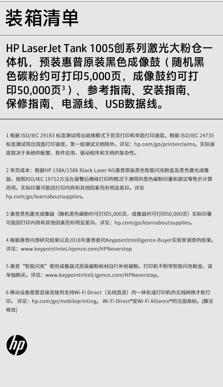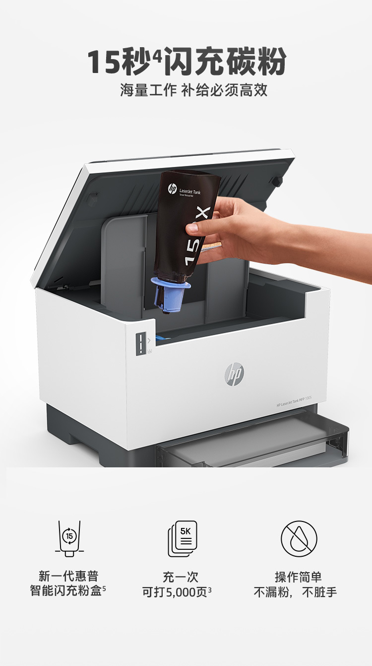 惠普(HP)Tank1005 A4黑白激光大粉仓打印机 台 灰色
