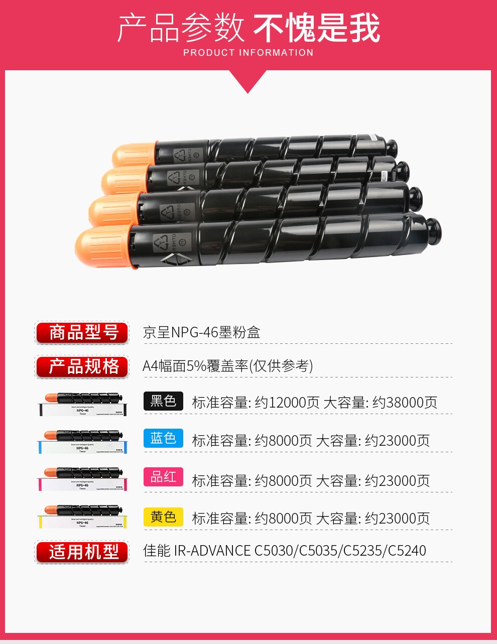 京呈适用佳能 NPG46粉盒C5030 C5035碳粉C5235 C5240墨盒GPR-31墨粉/套 NPG-46四色套装 大容量粉盒