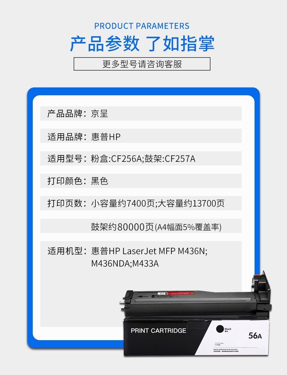京呈CF256X墨盒适用惠普m436n m436nda m433a复印机CF257A硒鼓56X粉盒/支 256X黑色大容量13700页