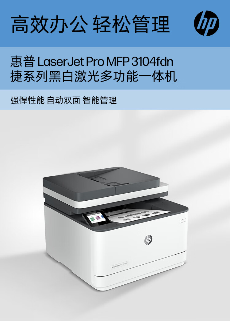 惠普(HP)3104fdn自动双面黑白激光有线打印机 台 灰色