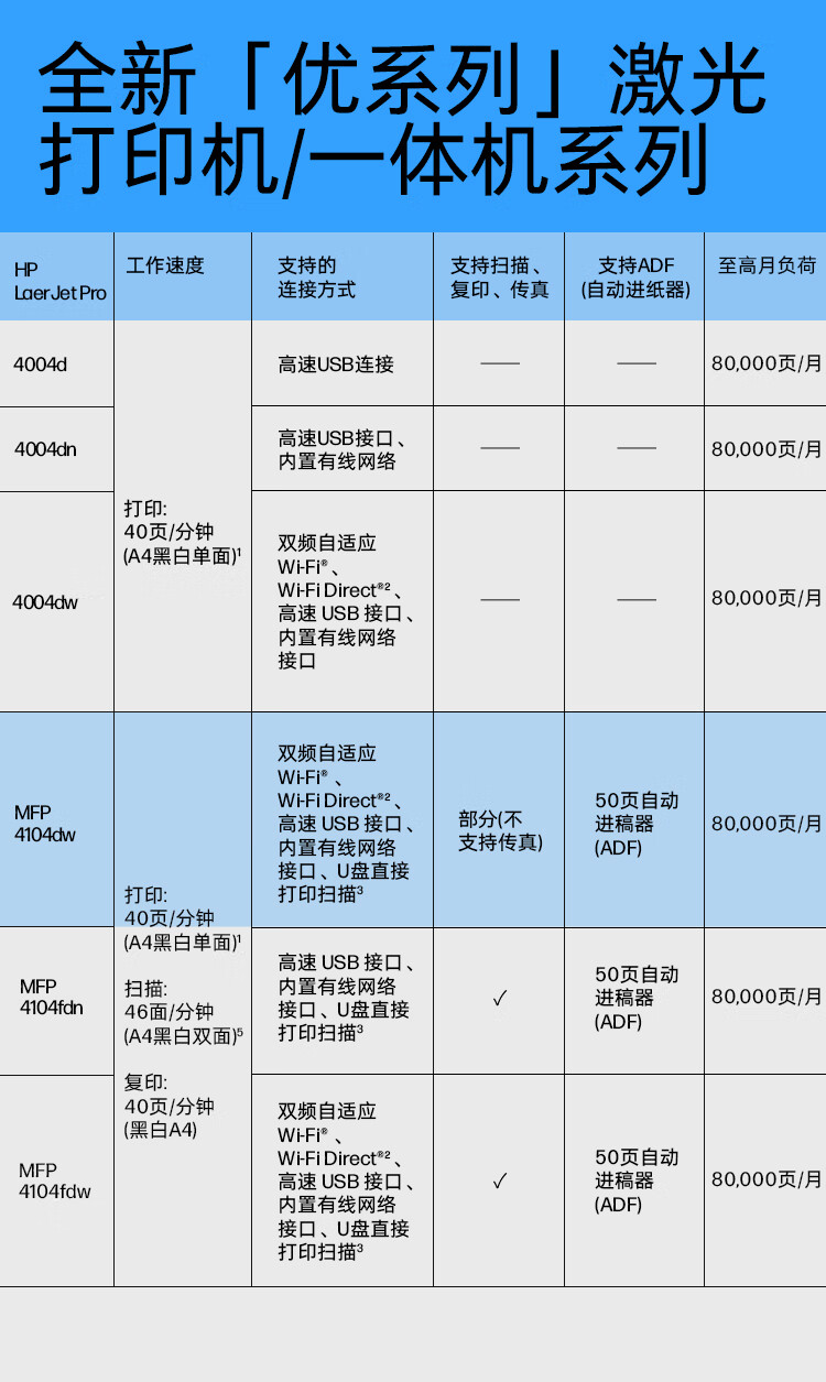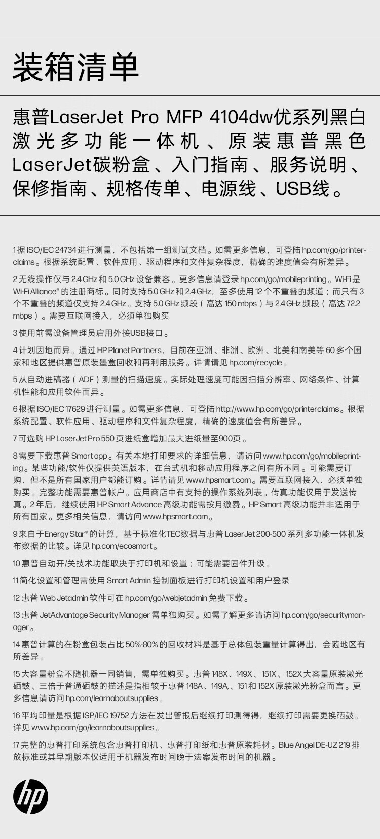 惠普(HP)a4黑白激光复印扫描一体打印机4104dw 台 灰色