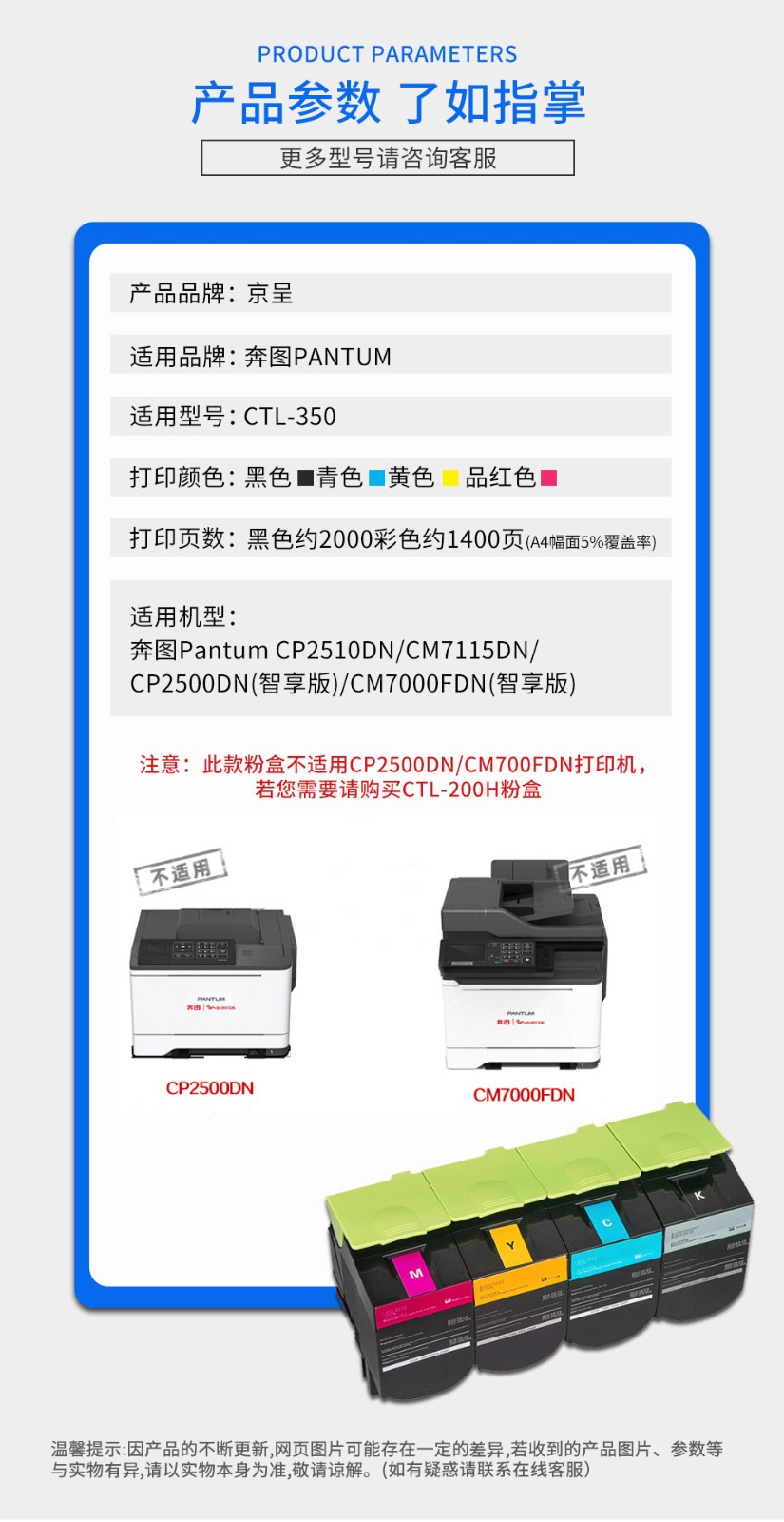 京呈CTL-350粉盒适用奔图CP2500DN(智享版)/CM7000FDN(智享版)激光打印机硒鼓/支 CTL-350HY 黄色大容量粉盒