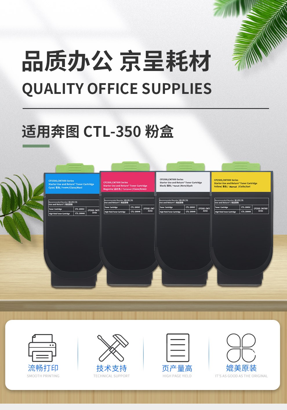 京呈CTL-350粉盒适用奔图CP2500DN(智享版)/CM7000FDN(智享版)激光打印机硒鼓/套 CTL-350H 四色套装 大容量粉盒