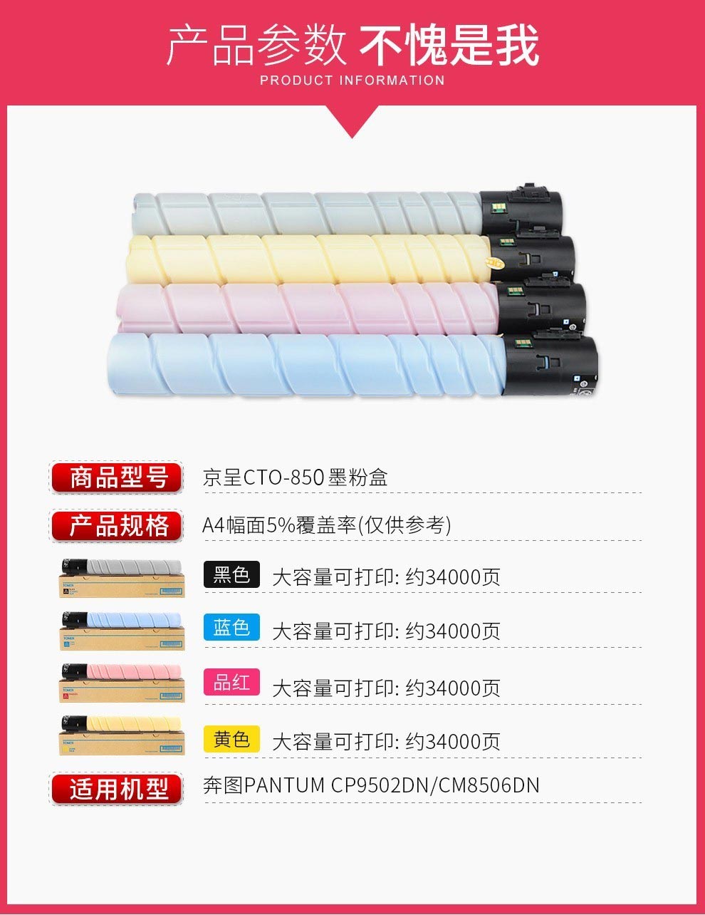 京呈CTO-850粉盒适用奔图CM8505DN墨粉CP9502DN墨盒CM8506/9505DN硒鼓/支 CTO-850XY黄色大容量