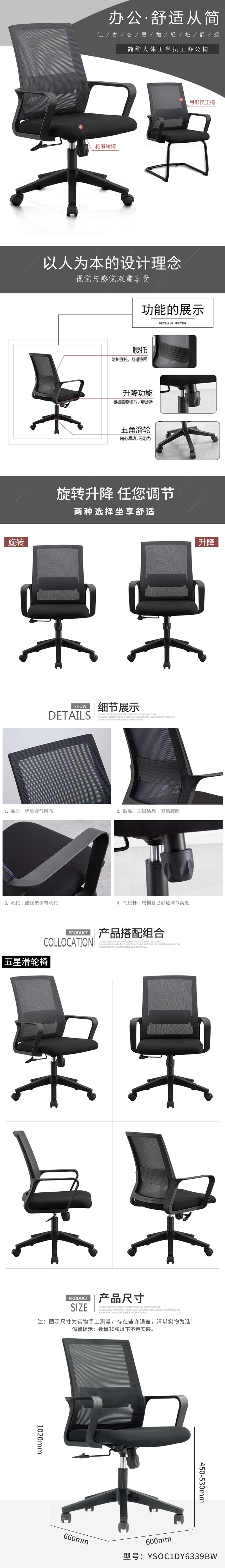 悦山 办公椅职员椅电脑椅转椅百搭网椅600*660*1020*1张 黑色