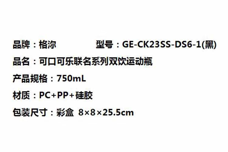 格沵(GERM)可口可乐联名系列双饮运动瓶GE-CK23SS-DS6系列750ml(单位:个) 黑色