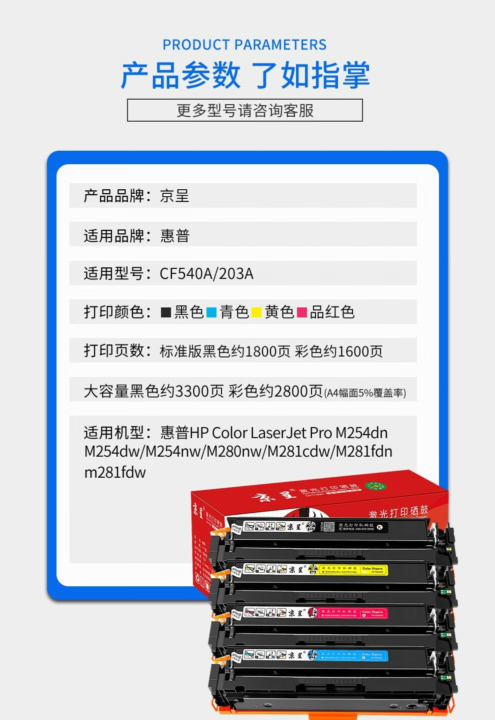 京呈惠普203A CF540A硒鼓适用M254dw M281fdW海外版港版打印机墨盒M280NW/支 CF540A/203a 黑色硒鼓