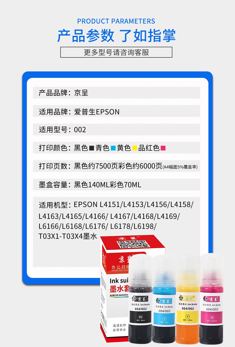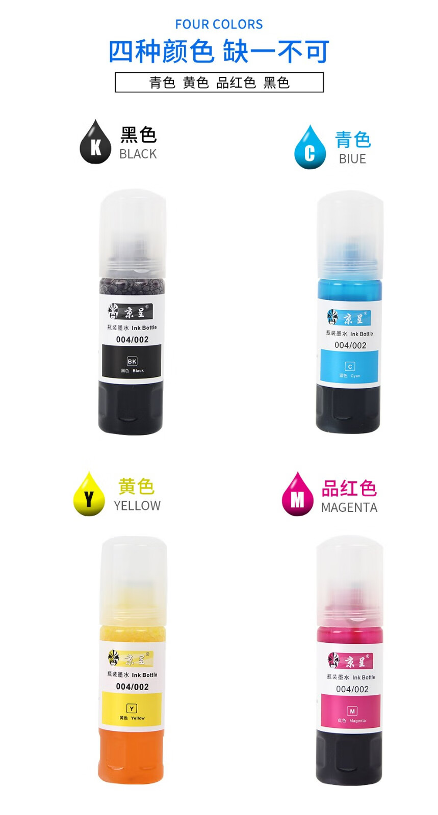 京呈适用爱普生 002墨水打印机墨水 L4168 L4158L4165L6166L6168L6178/套 四色墨水套装 25500页