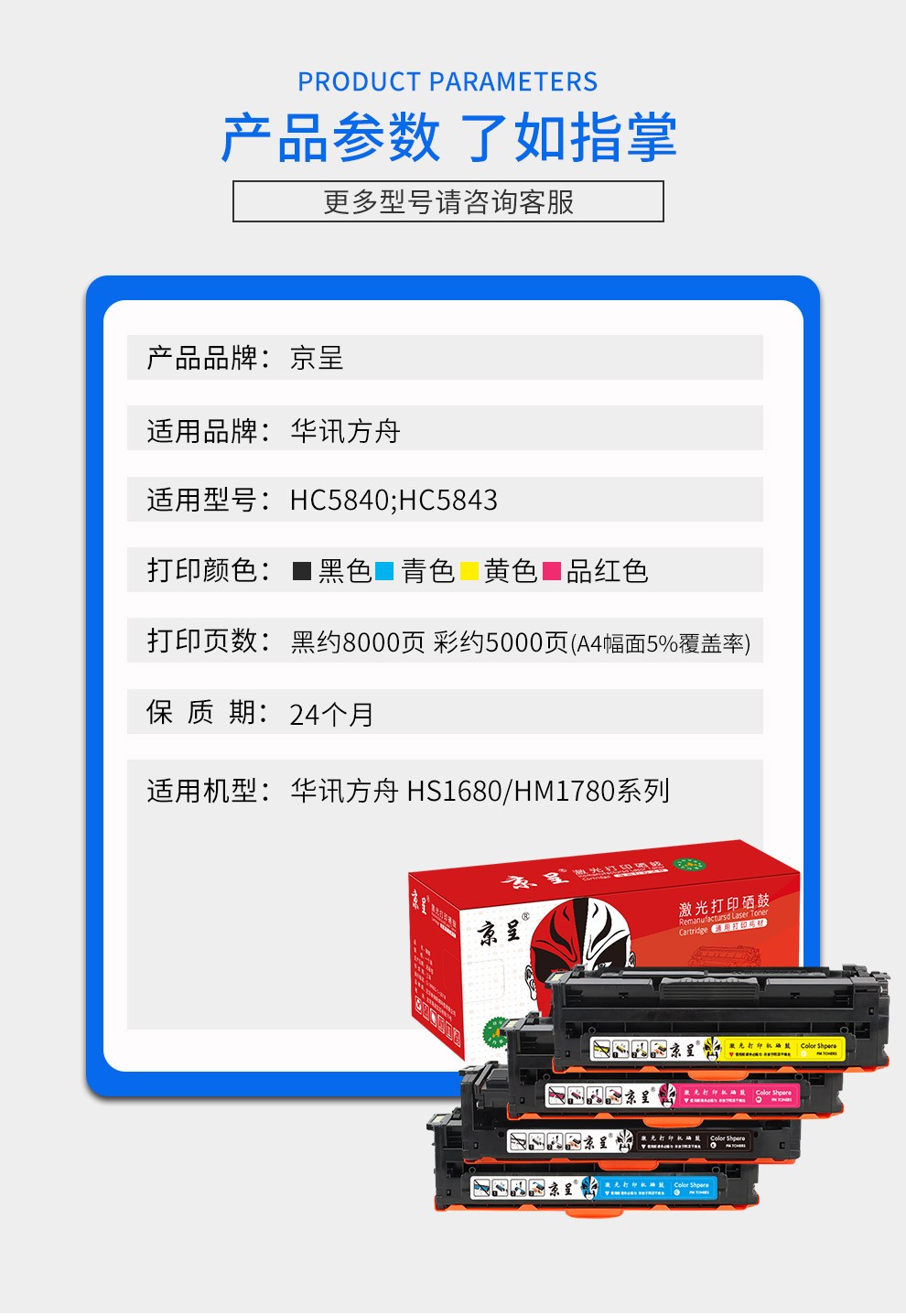 京呈HC5840硒鼓华讯方舟1780硒鼓 适用华讯方舟HM1780墨粉墨盒 HS1680硒鼓打印机/支 HC5842黄色粉盒(带芯片 上机即用)