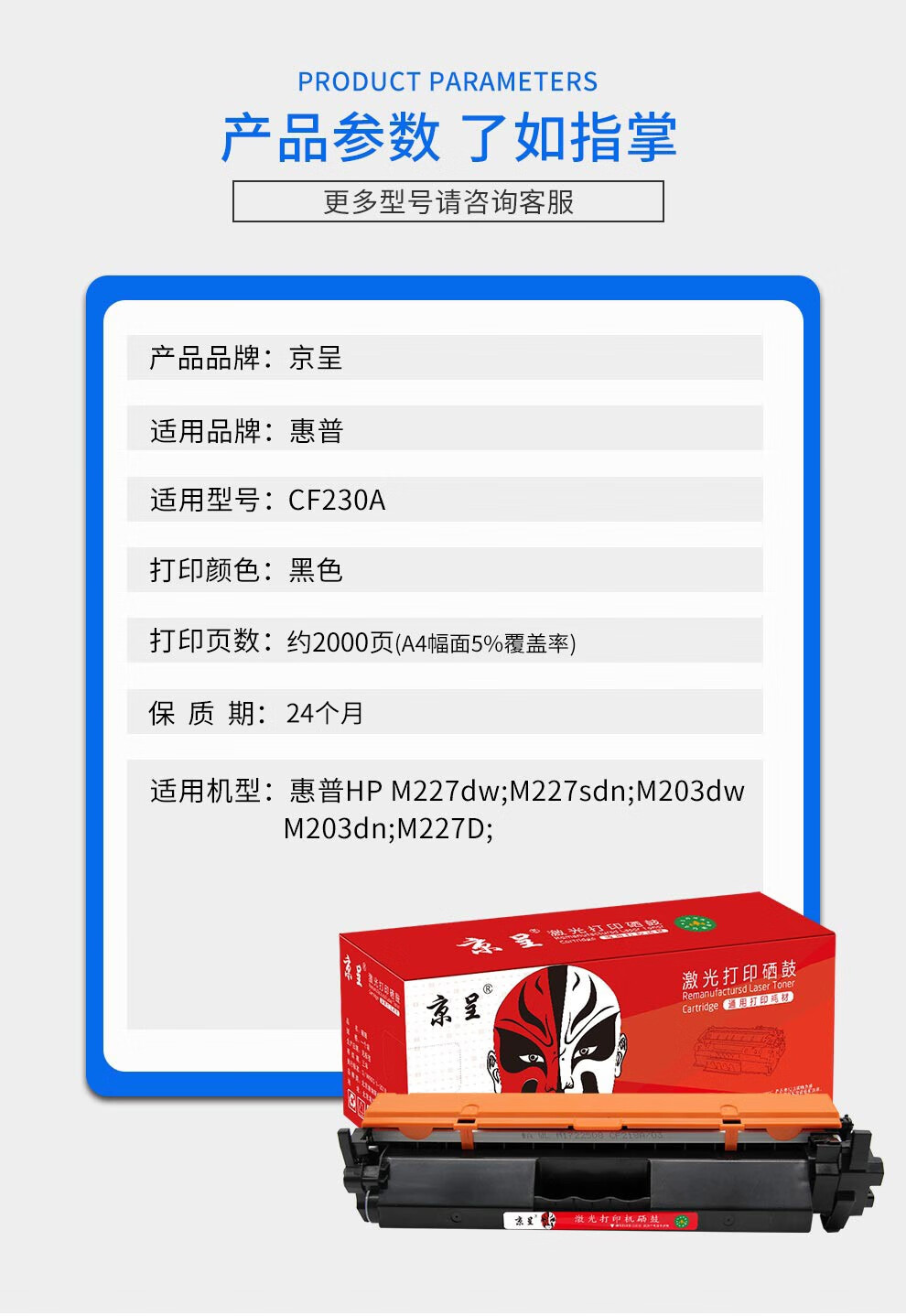 京呈m227fdw硒鼓适用惠普cf230a硒鼓227fdw墨盒打印机227fdn打印机203dw粉盒/支 高清黑色碳粉 1支装(60g)