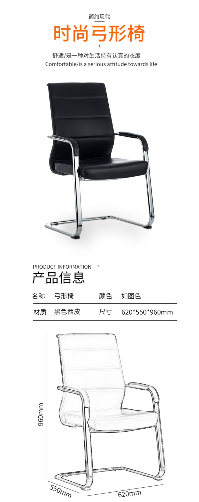 企诺 会议椅电脑椅办公椅网布弓形职员椅 620*550*960mm 1张 黑色 黑色