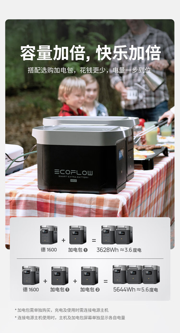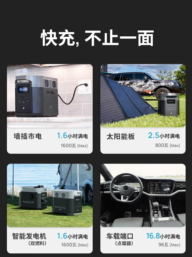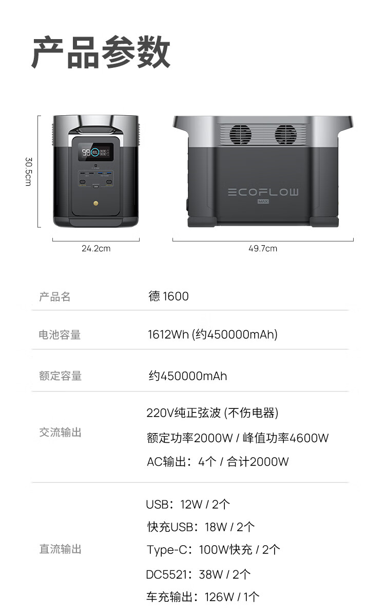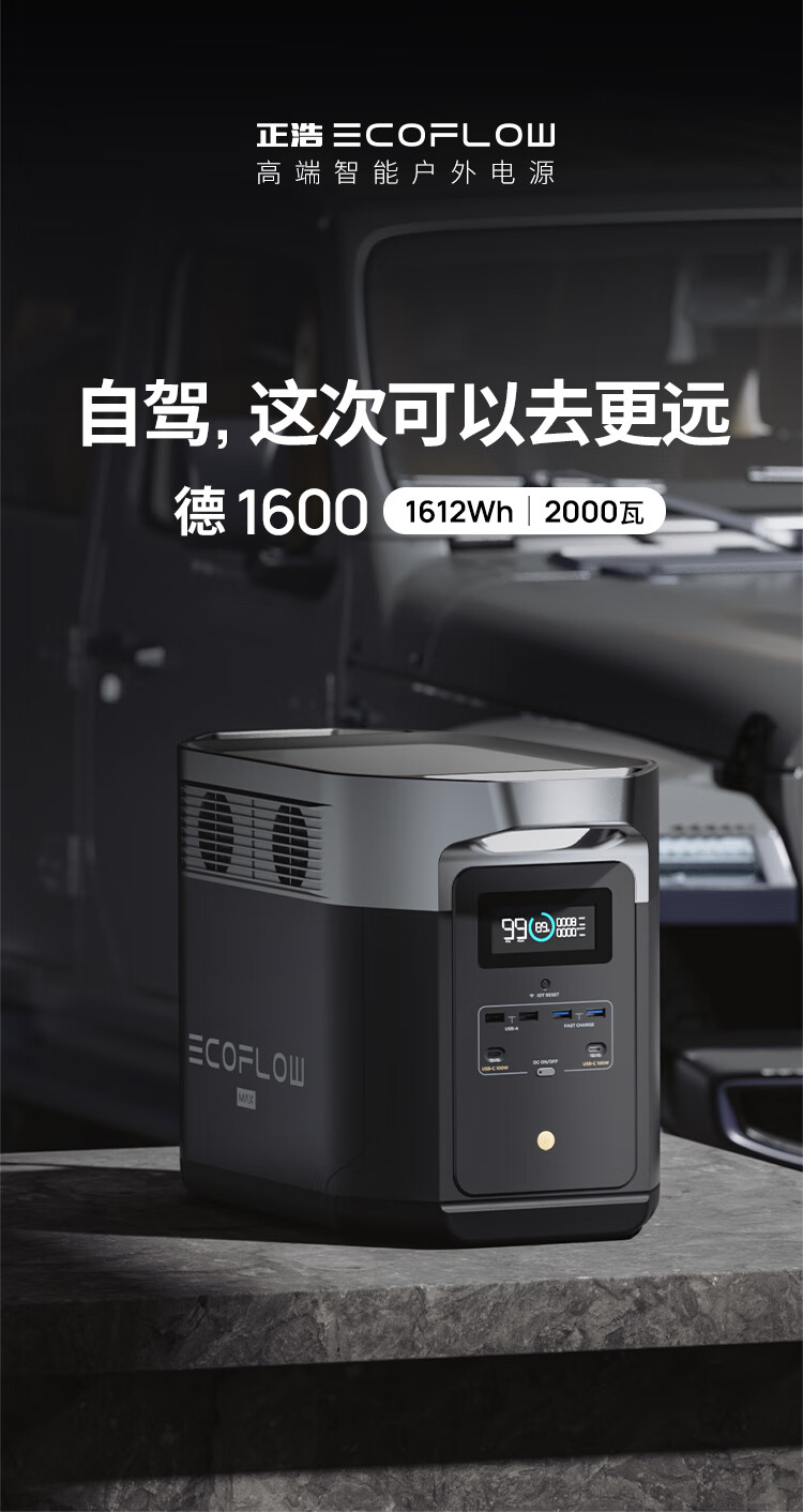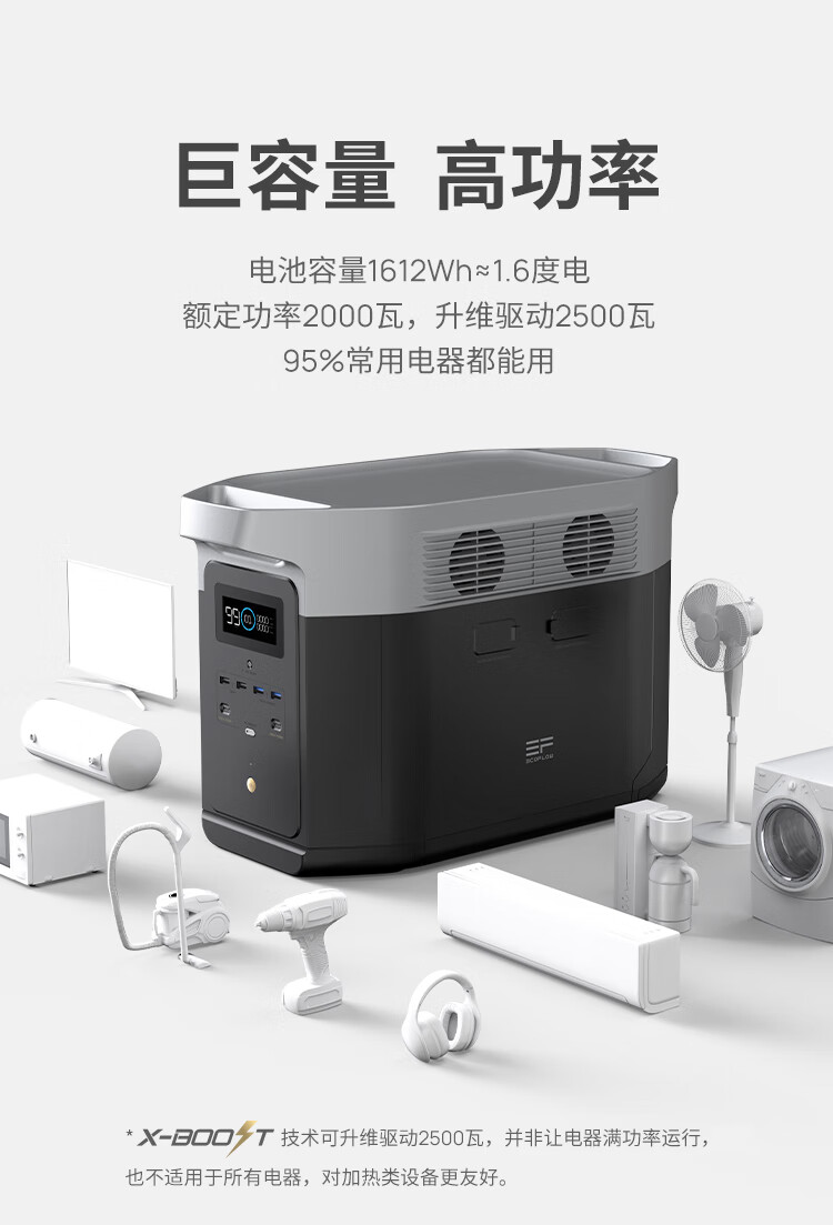 正浩EcoFlow 【大容量快充】移动户外电源220V 2000W大功率 车载自驾露营停电应急储能备用电源1612Wh 台 黑色
