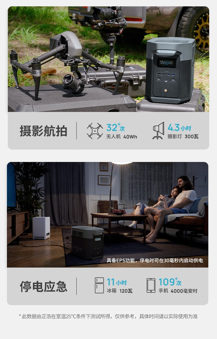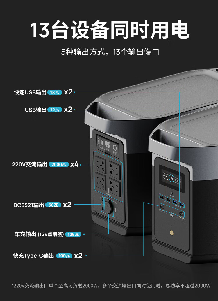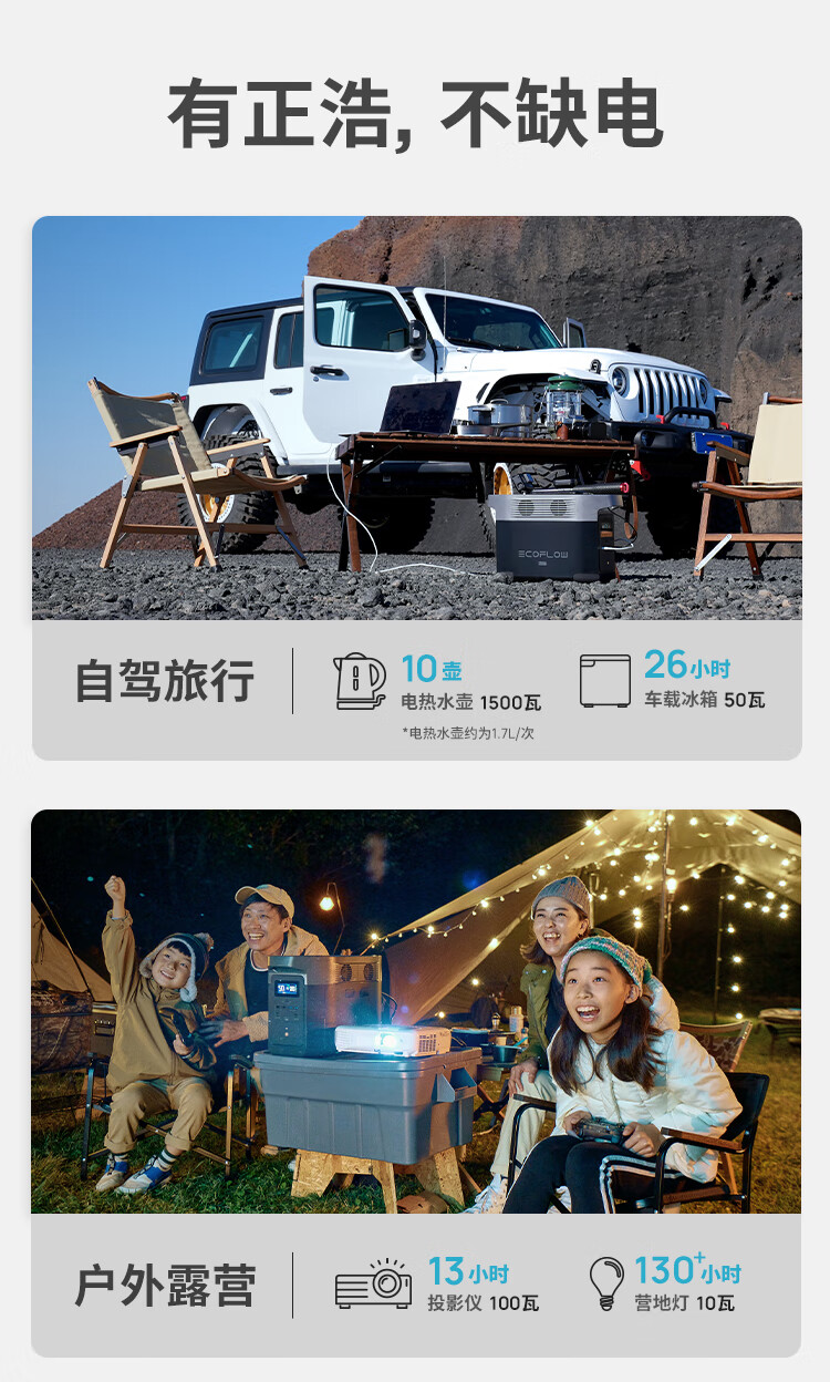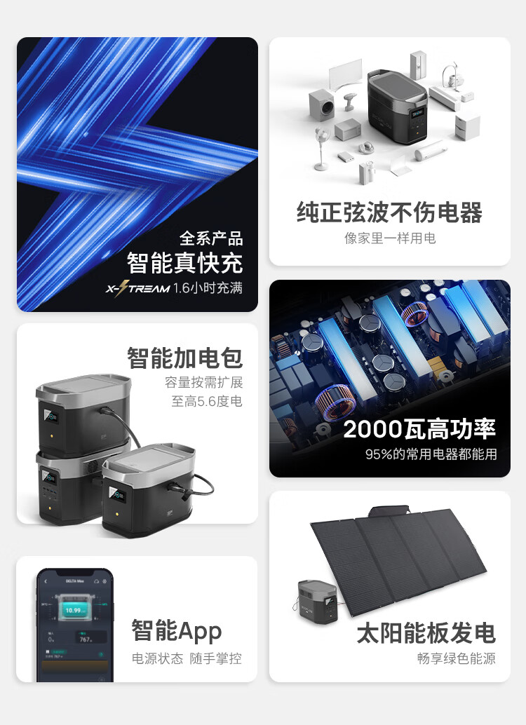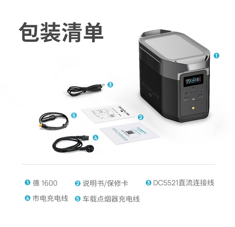 正浩EcoFlow 【大容量快充】移动户外电源220V 2000W大功率 车载自驾露营停电应急储能备用电源1612Wh 台 黑色