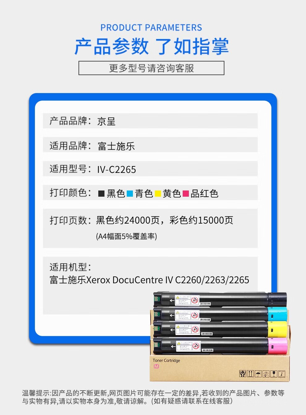 京呈施乐C2260粉盒适用四代施乐IV C2265 C2260粉盒IV C2263碳粉打印机墨盒硒鼓 四代四色套装 大容量/套