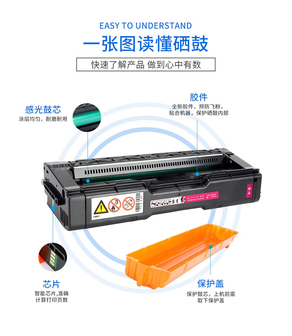 京呈适用理光PC300W硒鼓MC250FWB RICOH PC300W彩色墨盒MC250FWB粉盒 PC301H青色大容量硒鼓/支