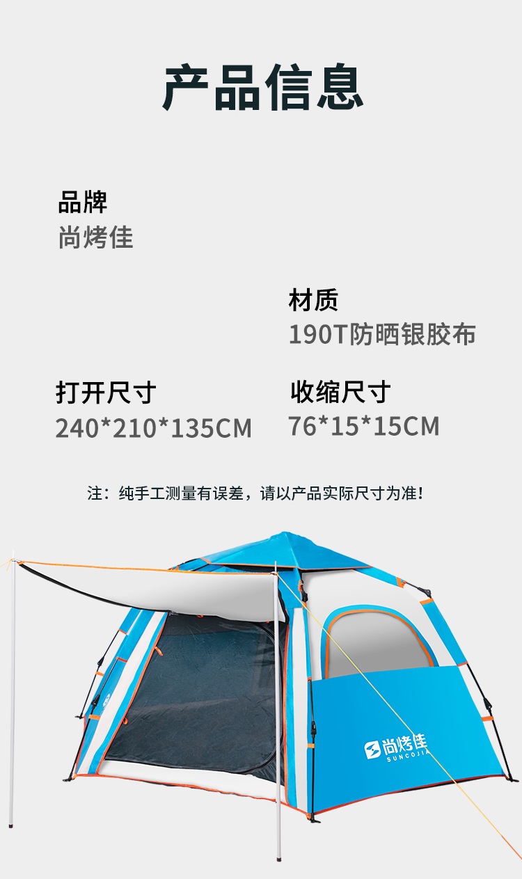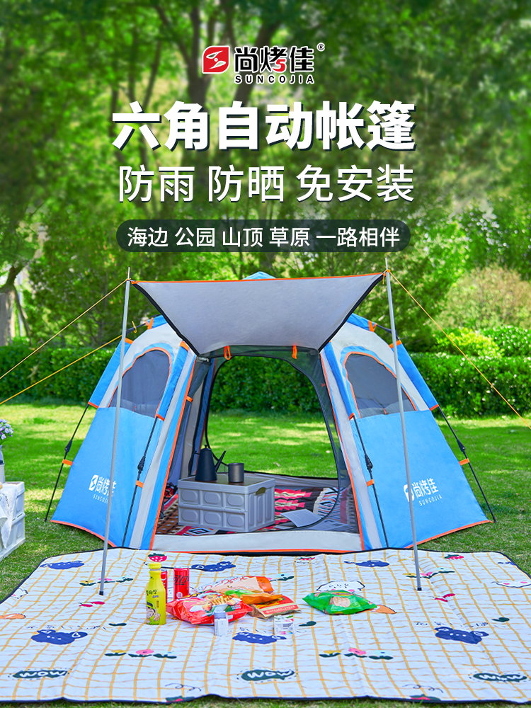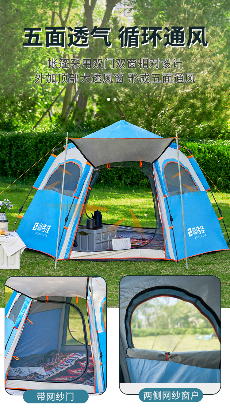 尚烤佳(Suncojia) 双开门带窗六角 240*210*135cm 易搭建,大空间 蓝色(单位:顶)