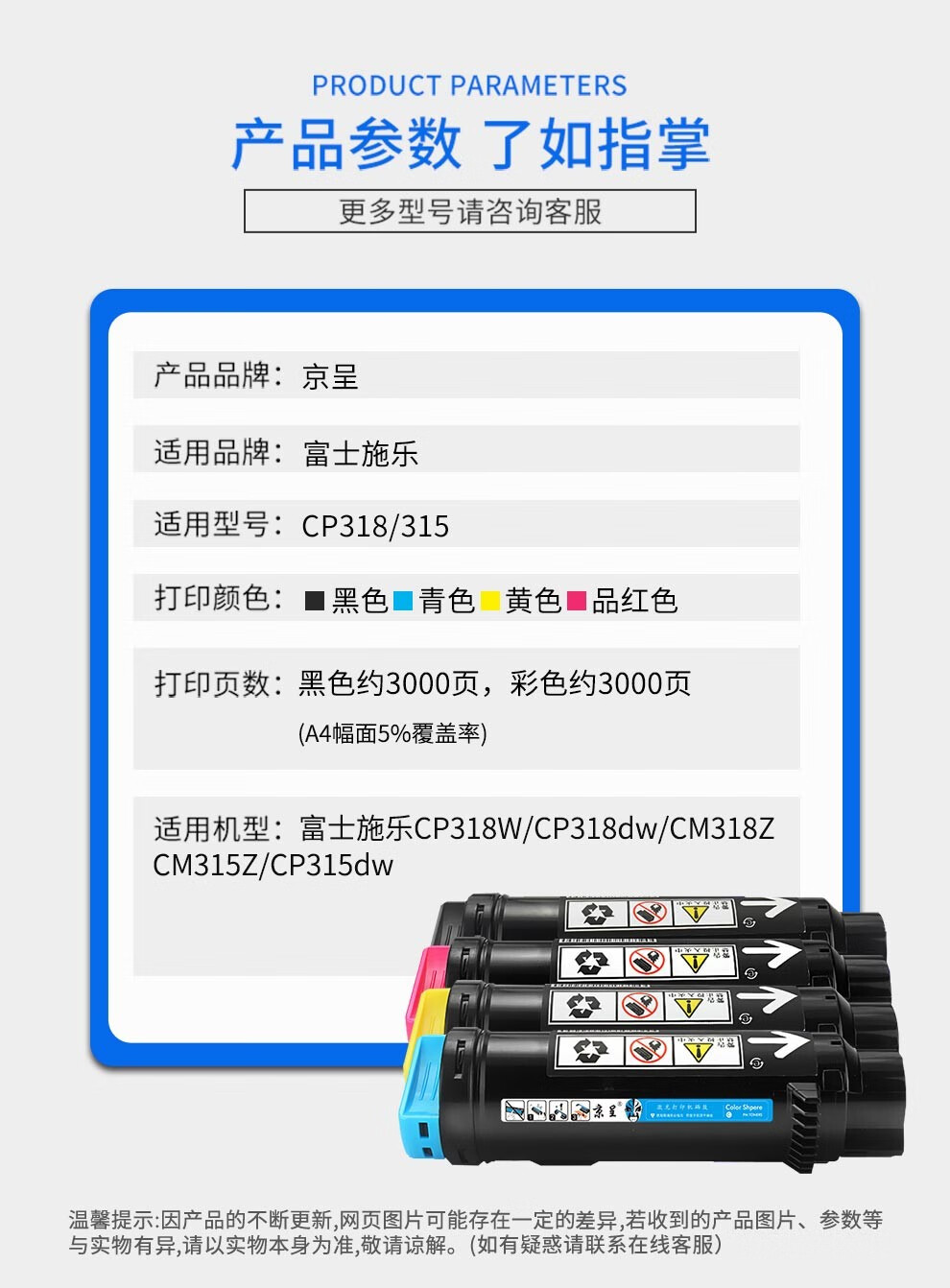 京呈适用施乐CP315DW粉盒CM318Z碳粉CP318DW硒鼓CM315Z墨粉筒富士施乐318墨盒 CP318/315粉盒 四色套装/套