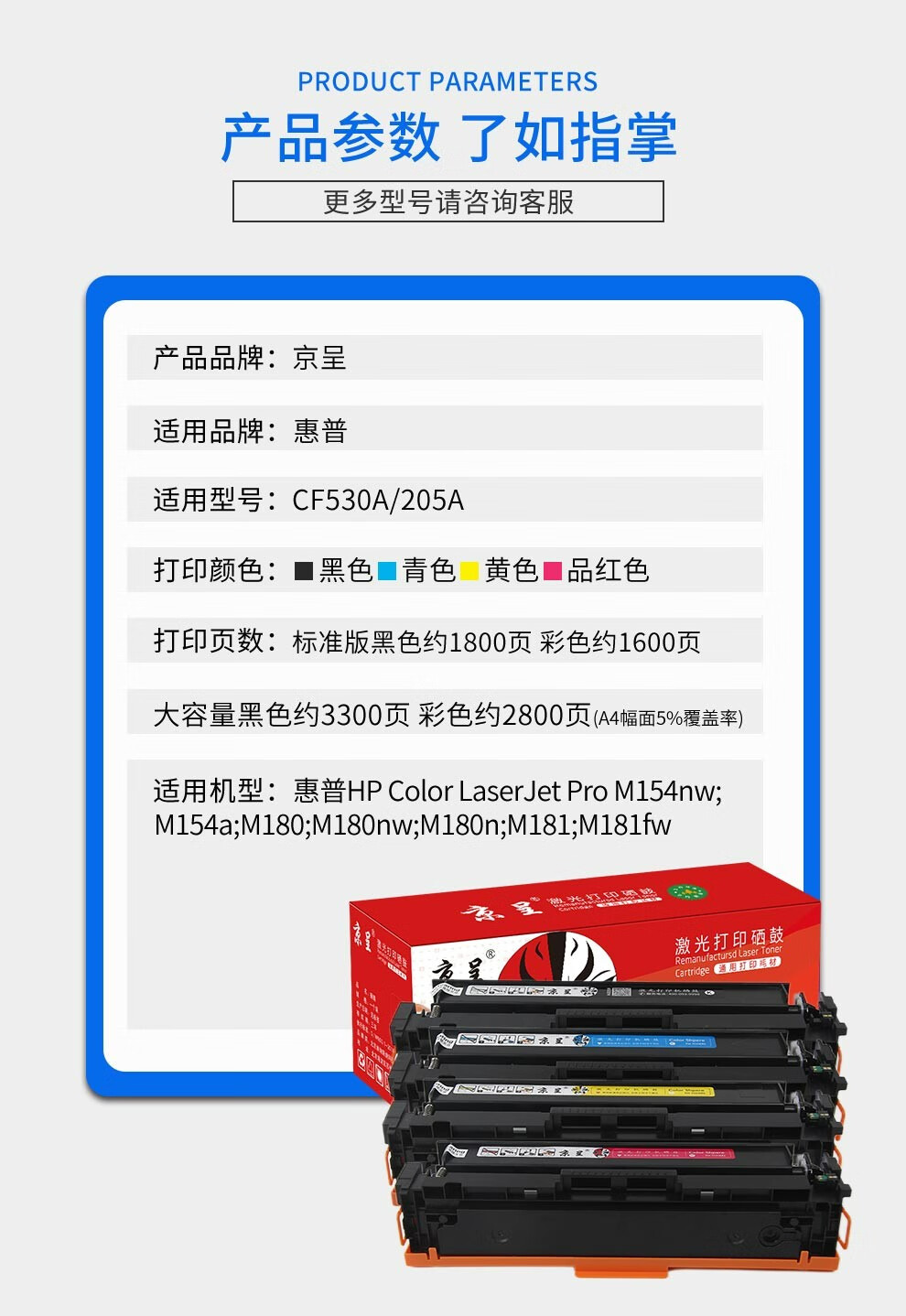 京呈适用惠普HP205A CF530A硒鼓M154A/nw M180N M181FW墨盒国外版墨粉盒 【带芯片】205A/CF532A黄色/支
