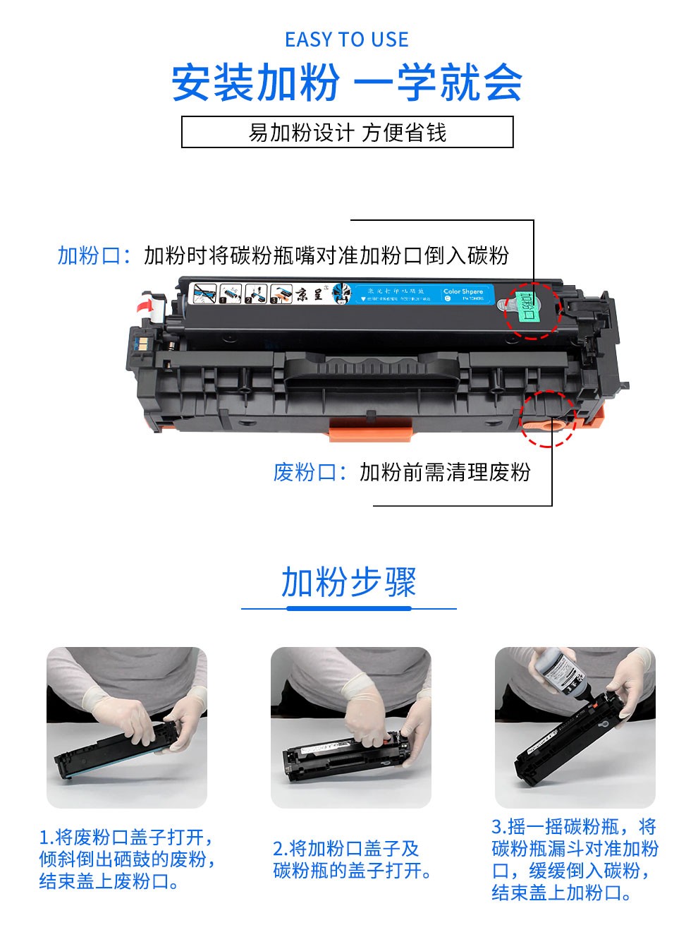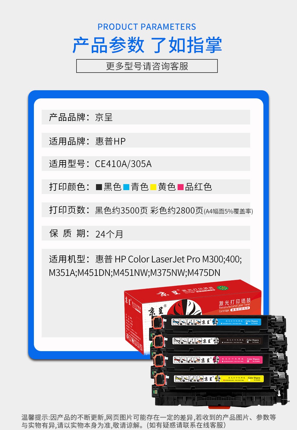 京呈适用惠普CE410A粉盒305a硒鼓M400/351A/M375NW碳粉M475墨盒M451DN CE410A 易加粉 四色硒鼓套装/套