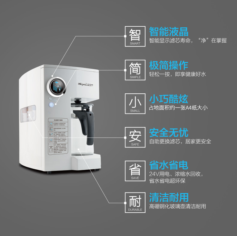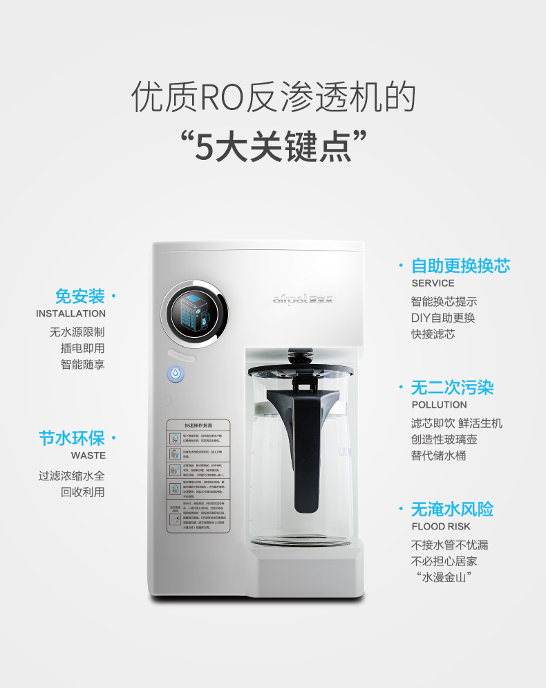 爱宝乐(airpal) 净水器家用 RO反渗透 低废水 AP-R85/台 白色