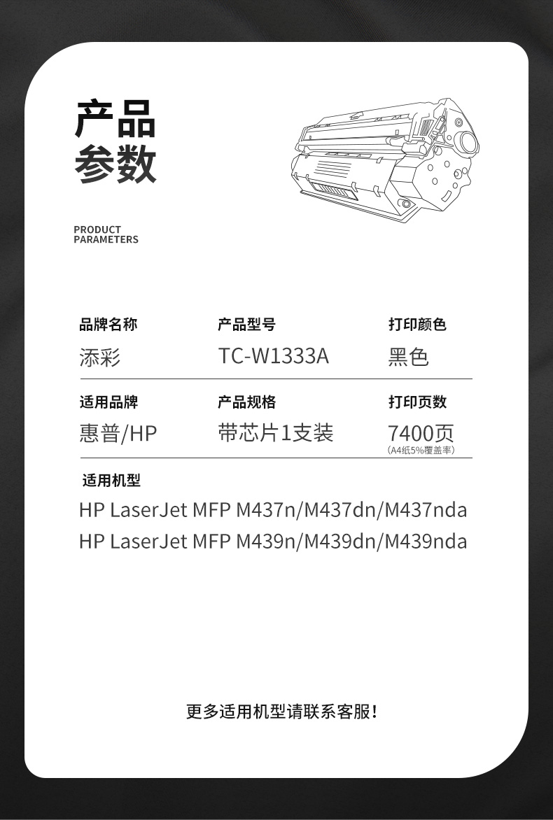 添彩TC-W1333A商用装适用HP MFP M437n/n打印量7400页 激光碳粉盒 支 黑色