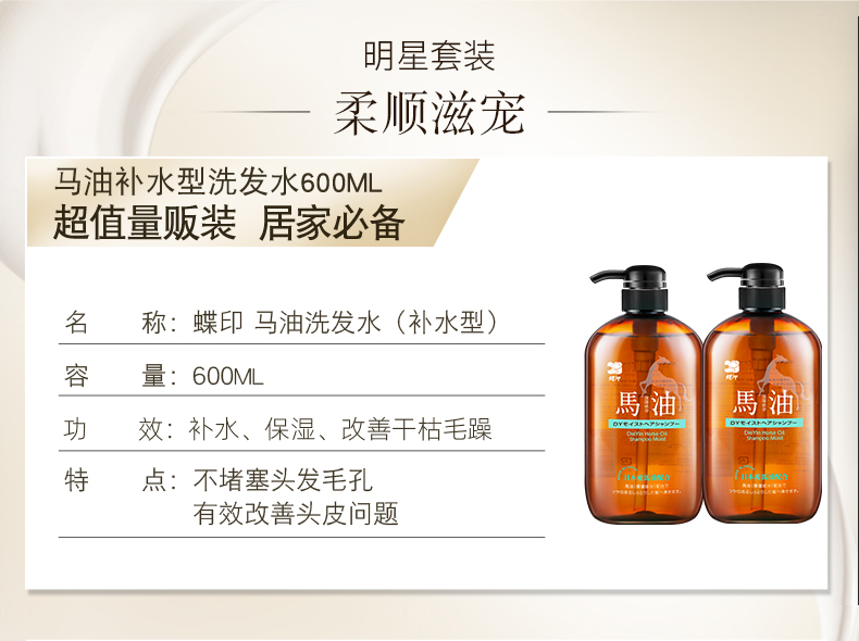 蝶印 马油洗发水套装(补水型)600mL+600mL(计价单位:套) 炫橙色