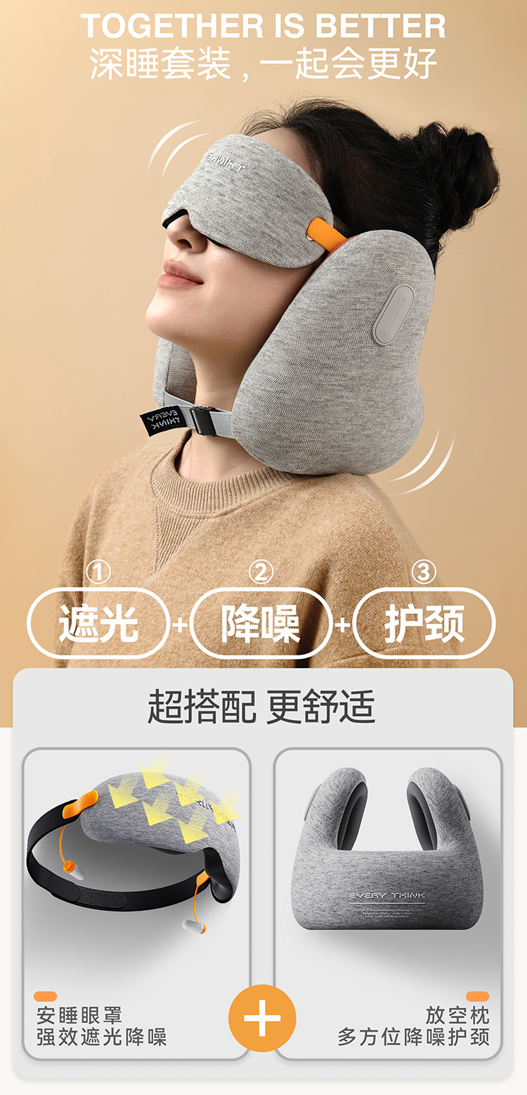 脑洞氛子(EVERYTHINK)旅行便携遮光降噪均码可调节大小灰色安睡眼罩V-2(单位:个) 灰色