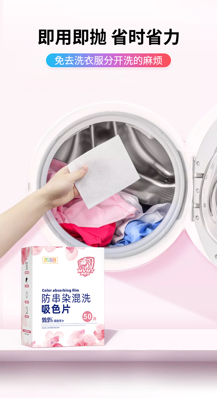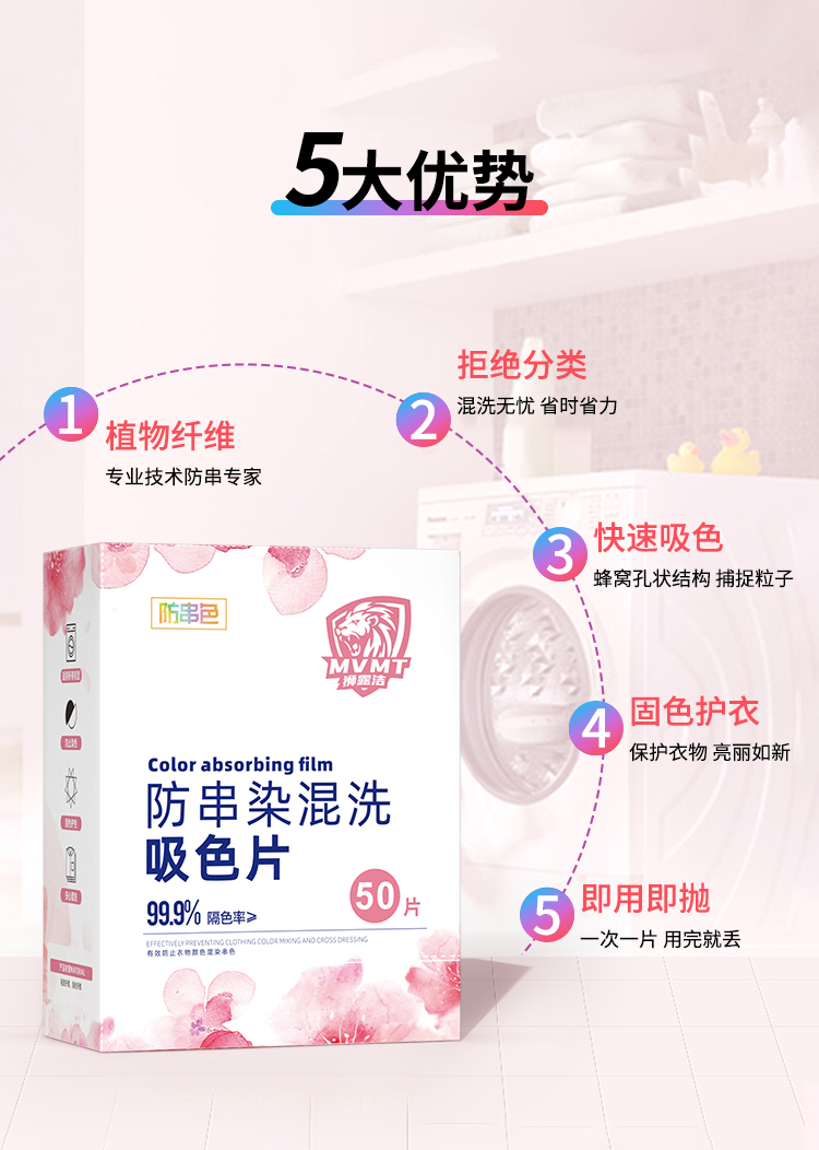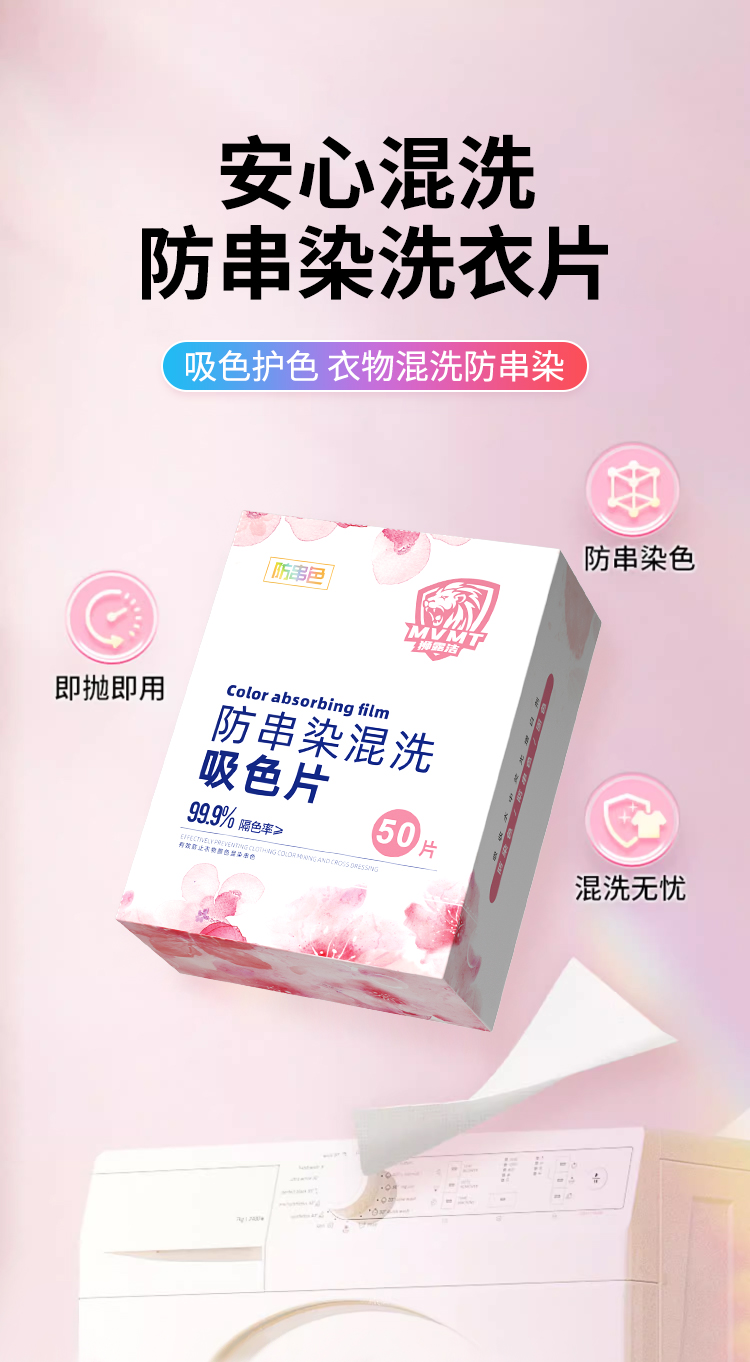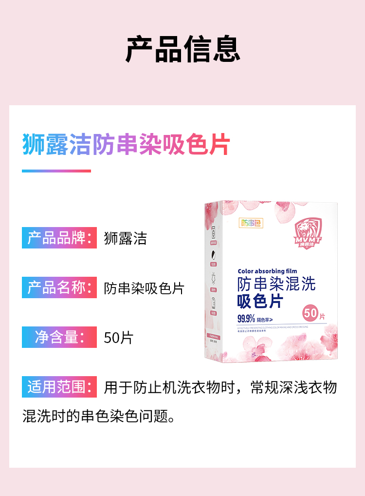 狮露洁洗衣防串染色片50片/盒*4盒 粉白色