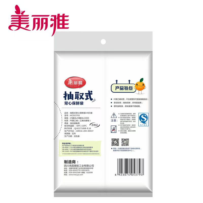美丽雅(MARYYA) HC053793 30*25cm 140只背心保鲜袋 白色(单位:袋)