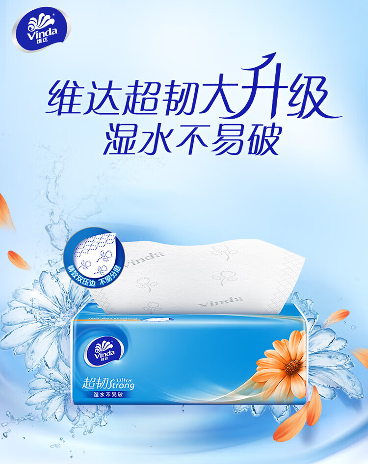维达 V2887 3层100抽*4包/133mm*195mm 抽取式面巾抽纸 蓝色(单位:组)