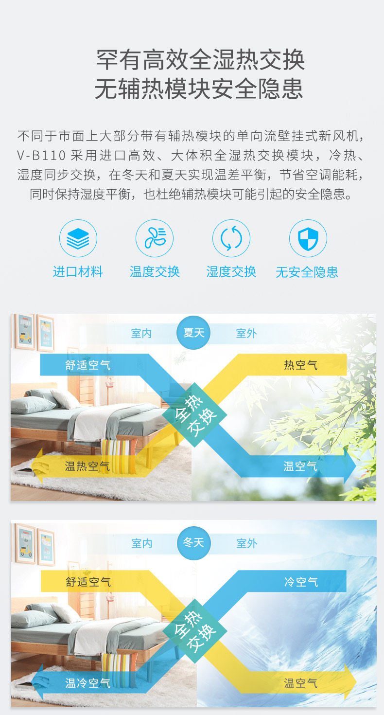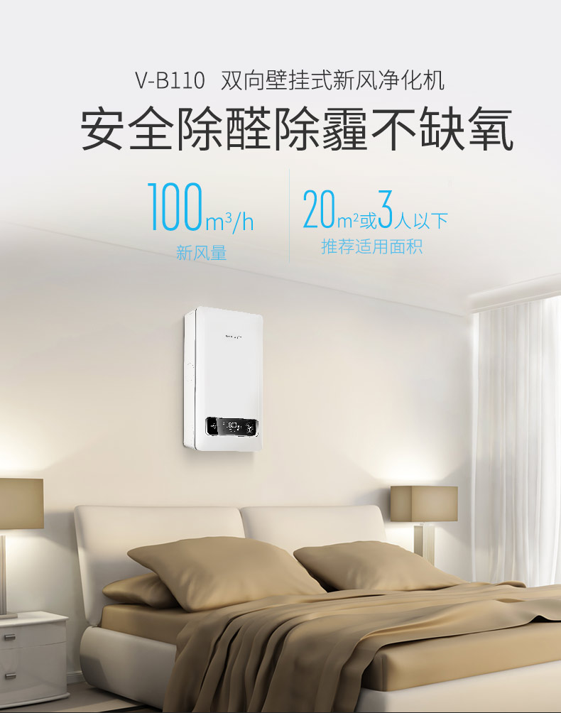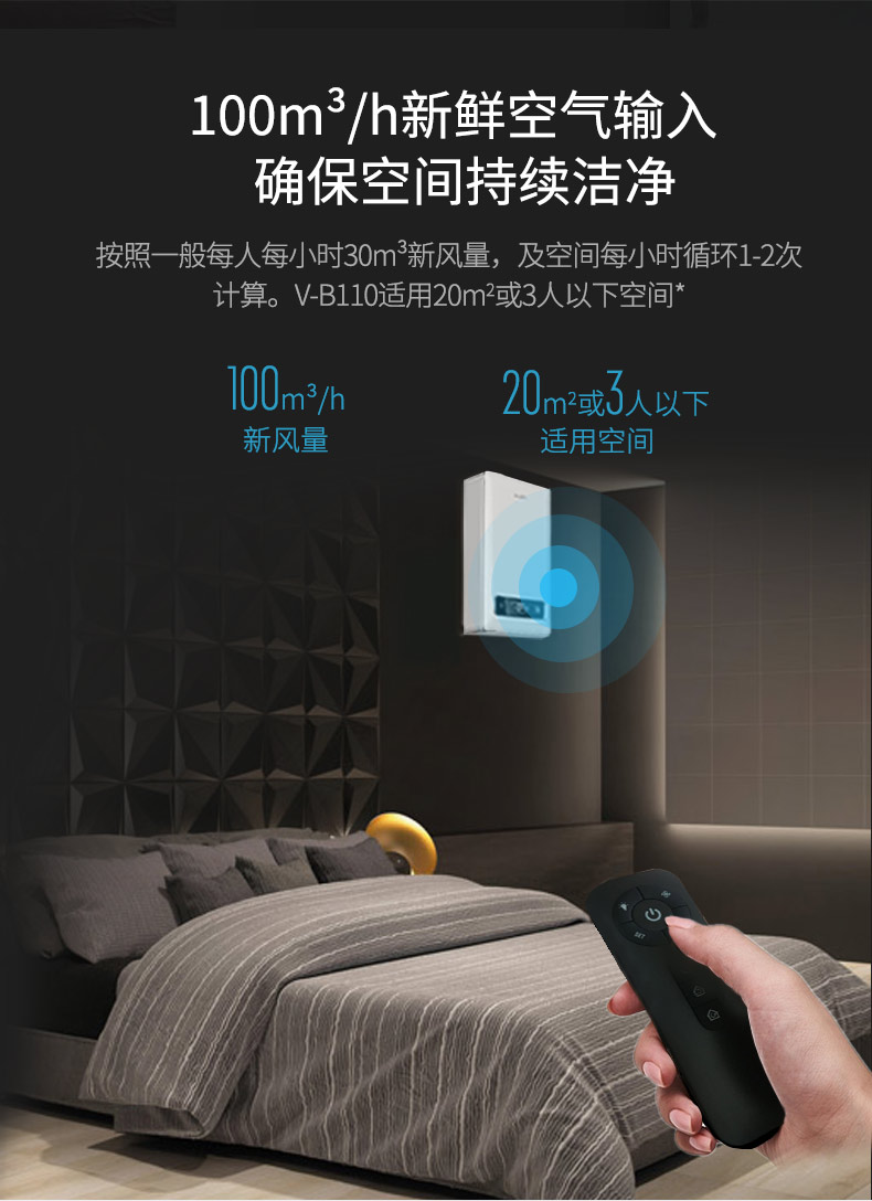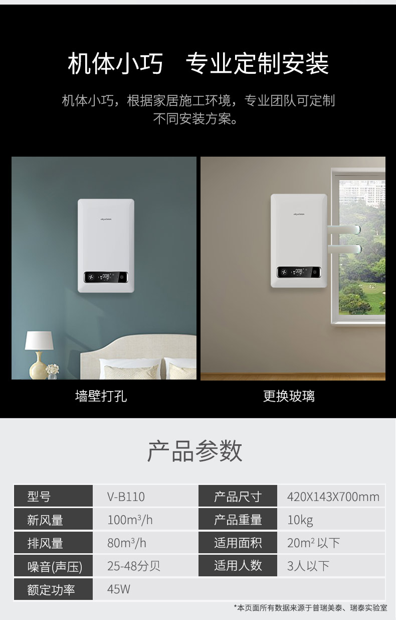 爱宝乐(airpal) 新风机家用壁挂式中央新风系统超薄 V-B110 白色